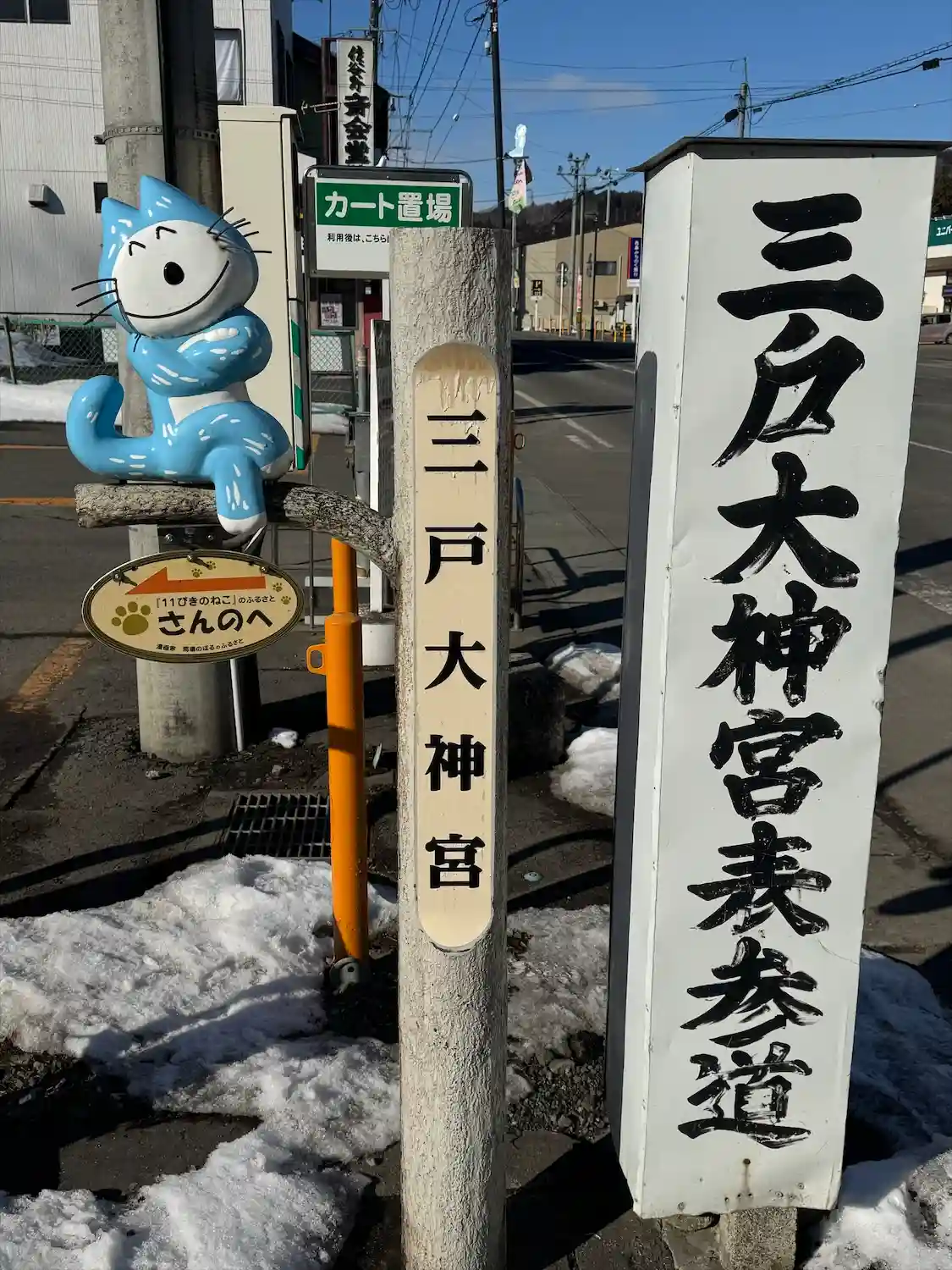 幼いころ絵本でよく見た11ぴきのねこシリーズの作者、馬場のぼる先生の出身地、ということでいたるところに11ぴきの猫がいました。こちらは道の駅のもの。