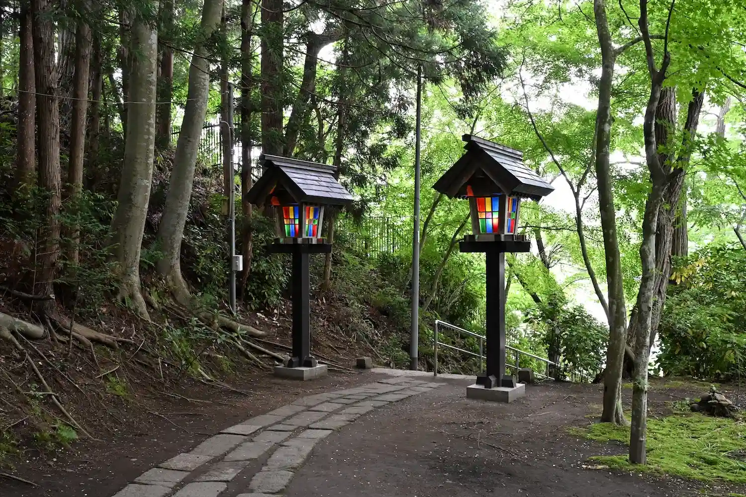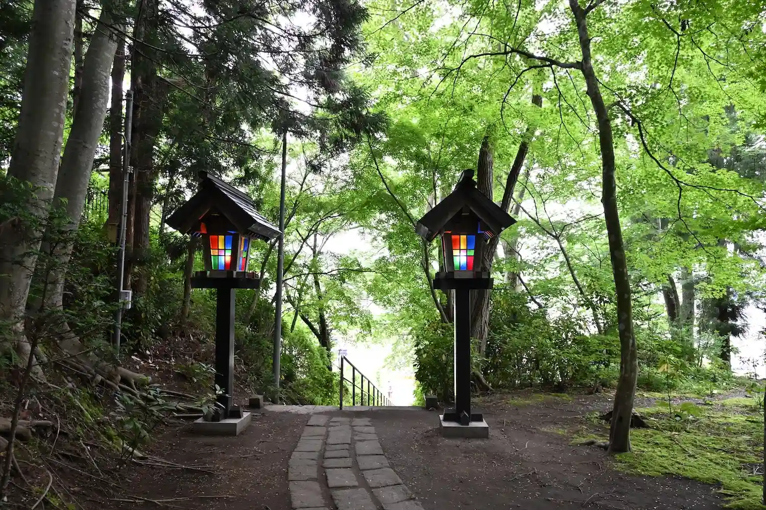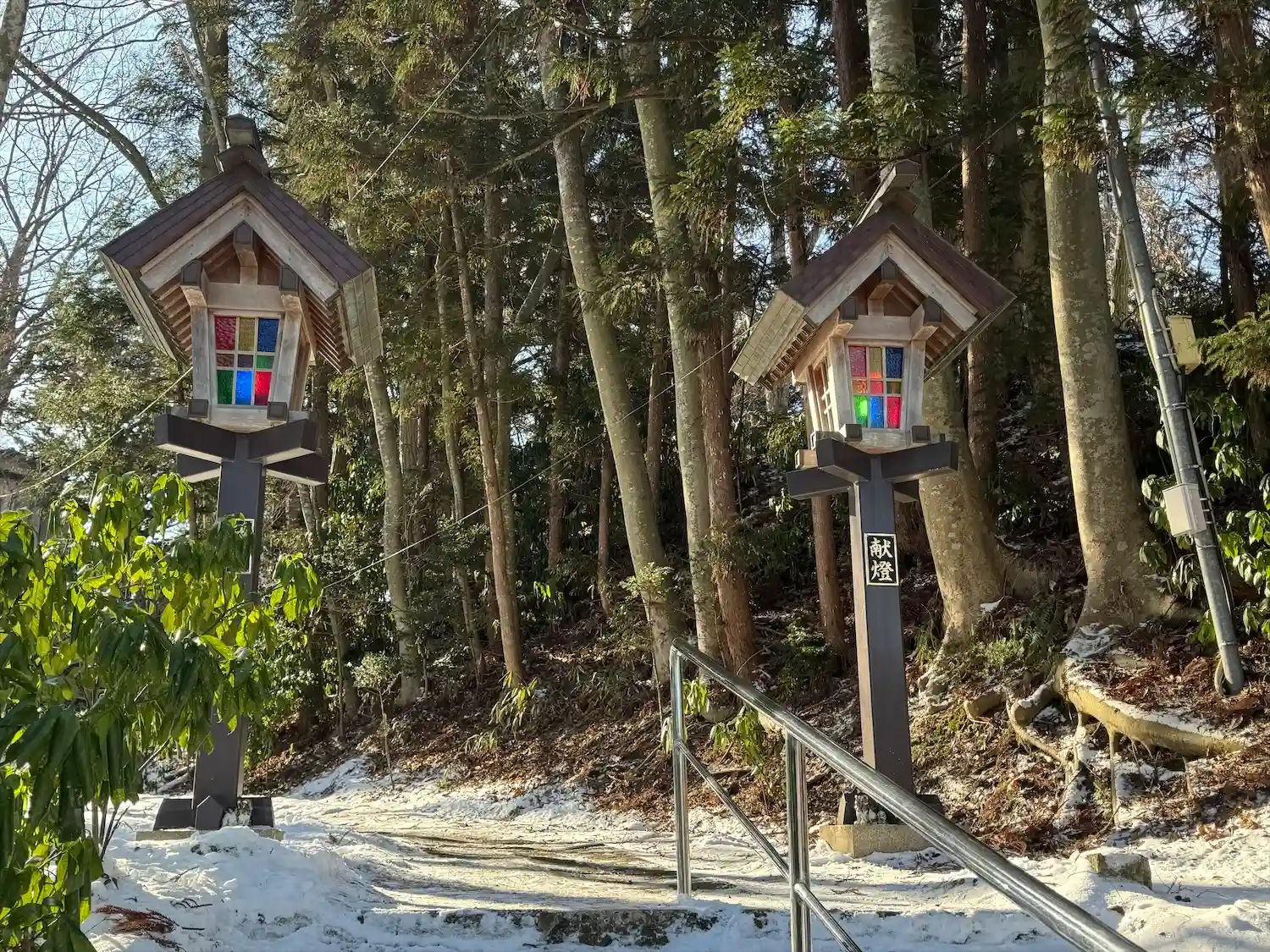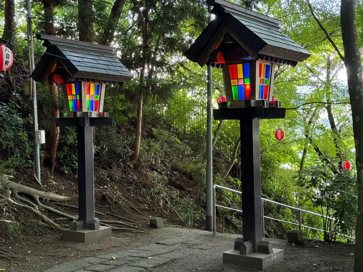 100段あるという階段を登るとステンドグラスを使っている灯篭が見れます