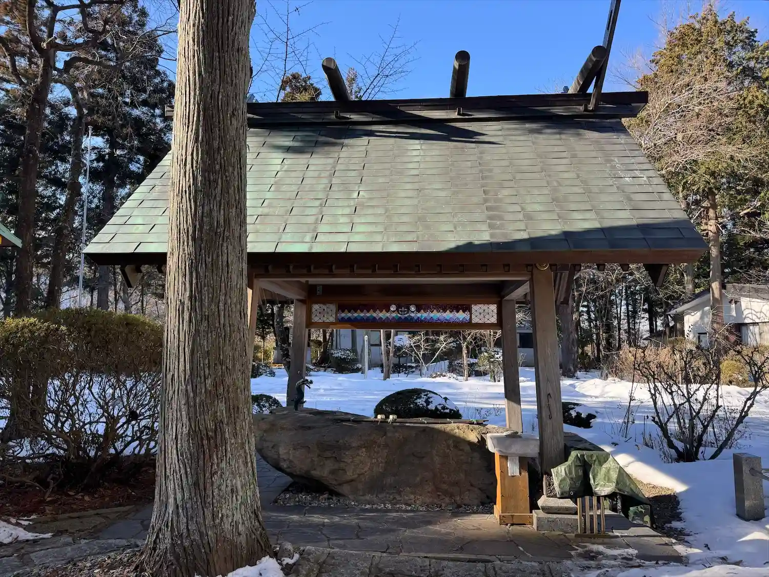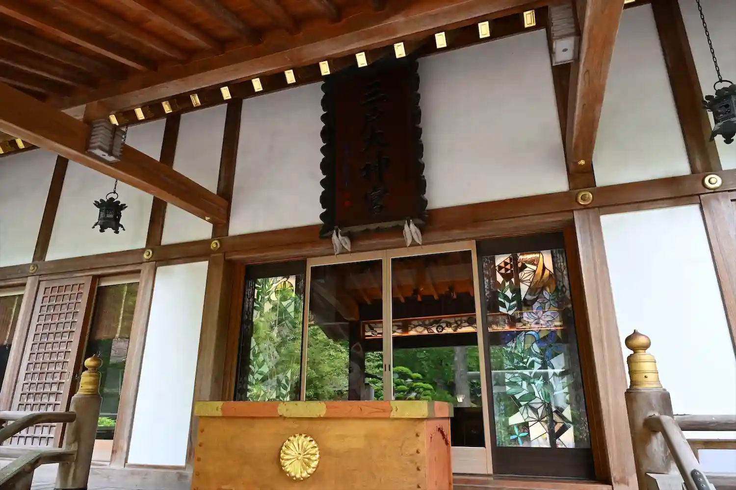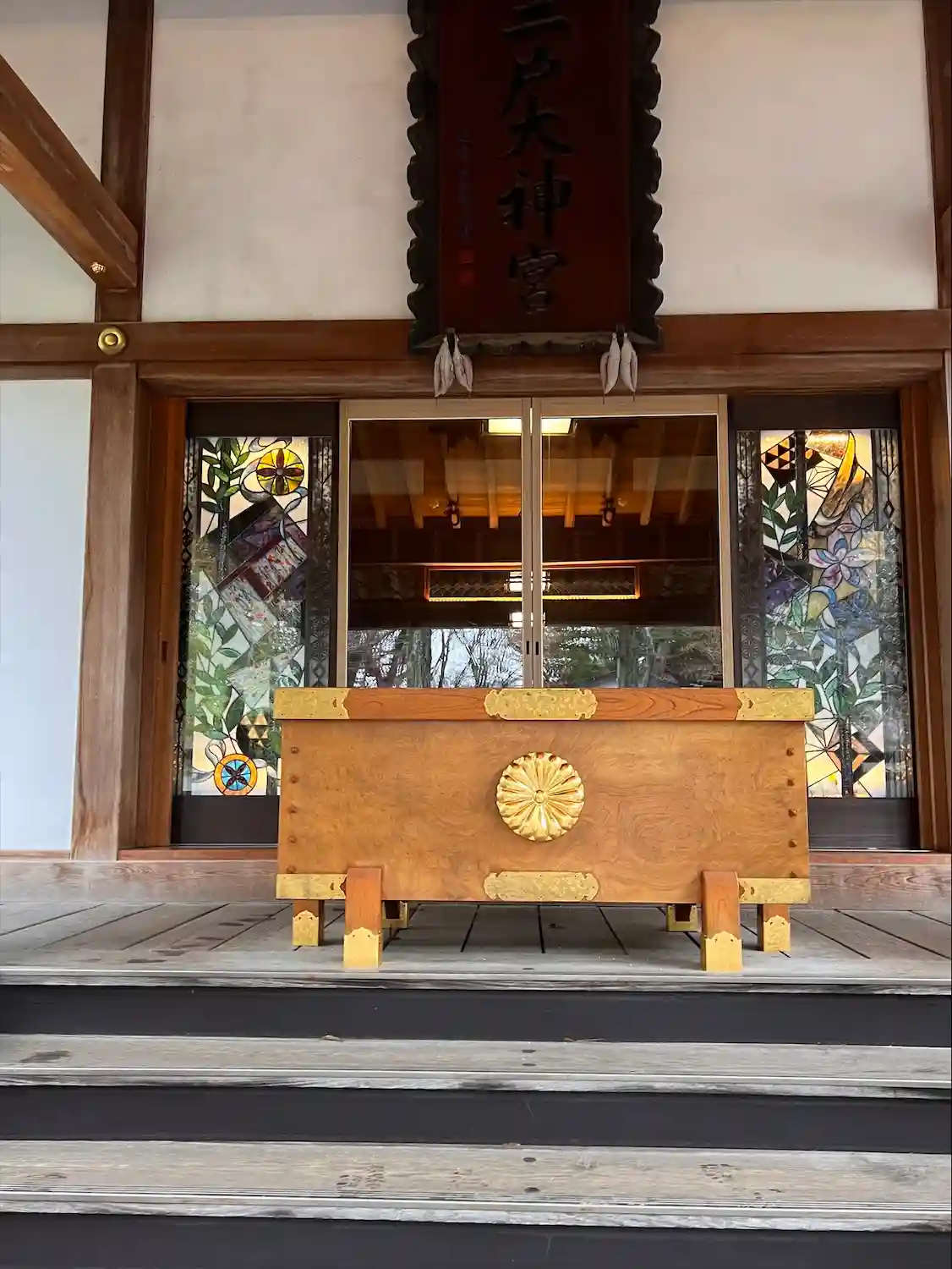 神社にステンドグラスって珍…