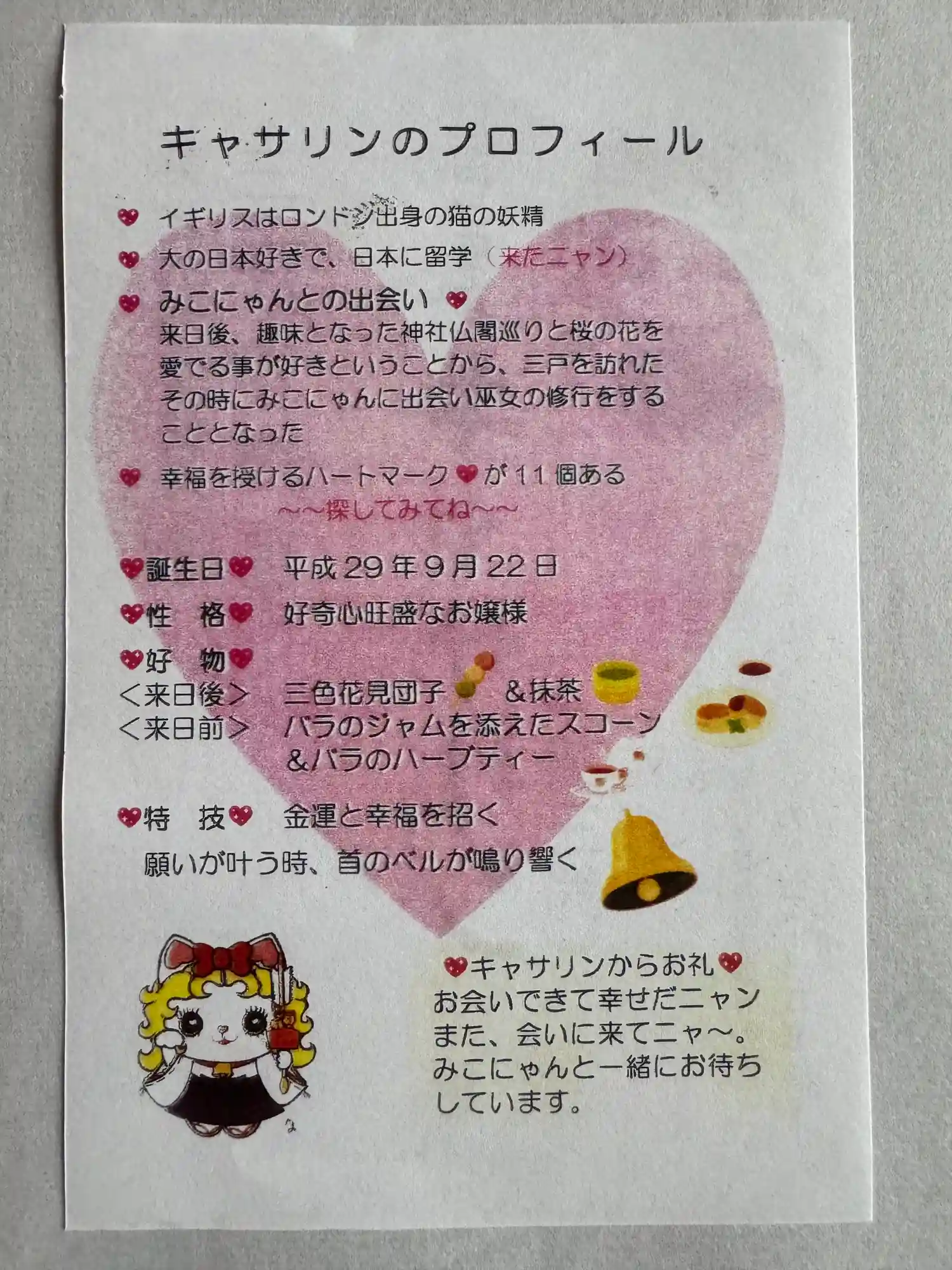 キャサリンの御朱印帳、みこにゃんより大きめサイズでキャサリンの御朱印がもうかいてあります。