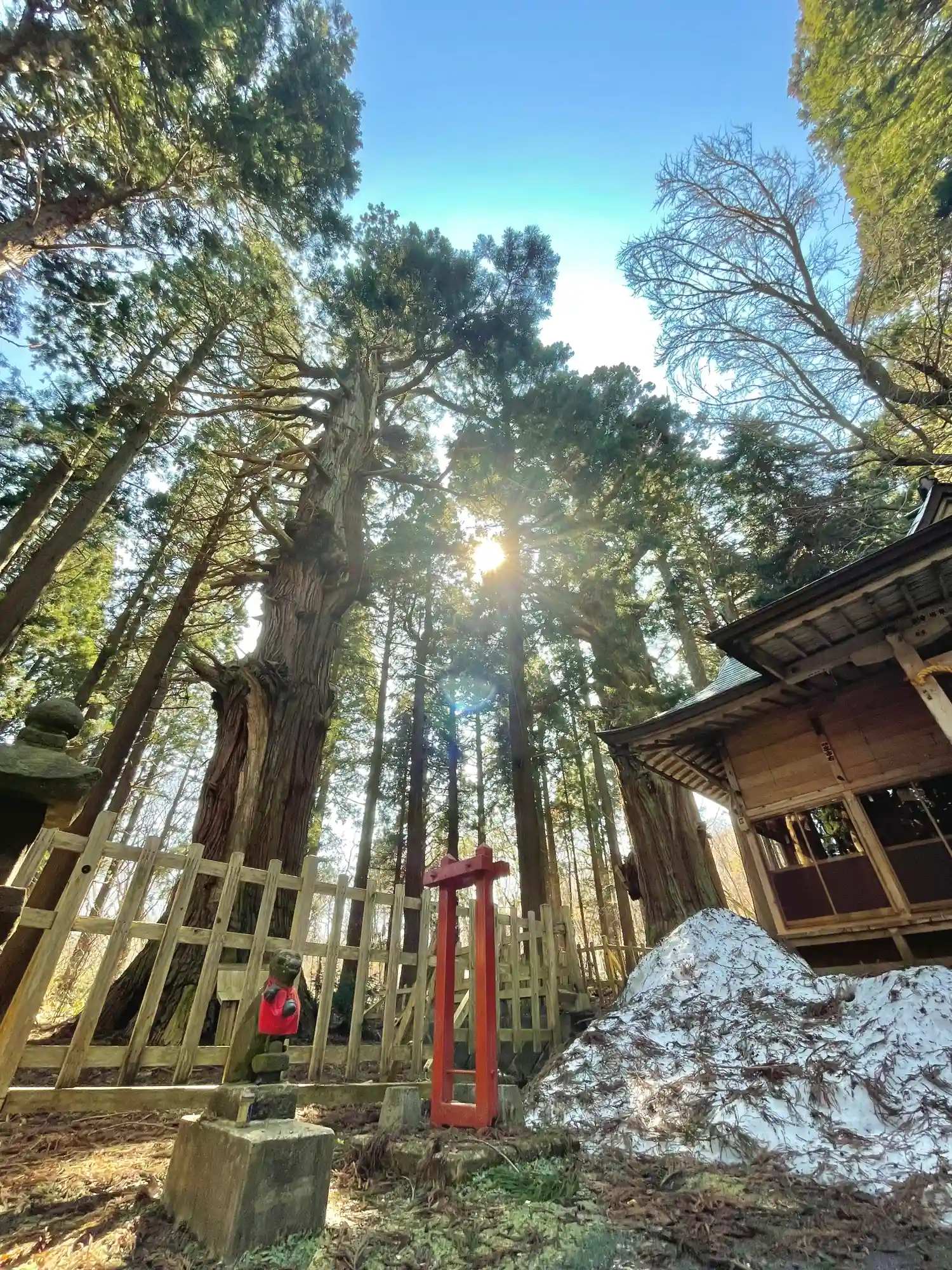 周りは杉の木に覆われていて