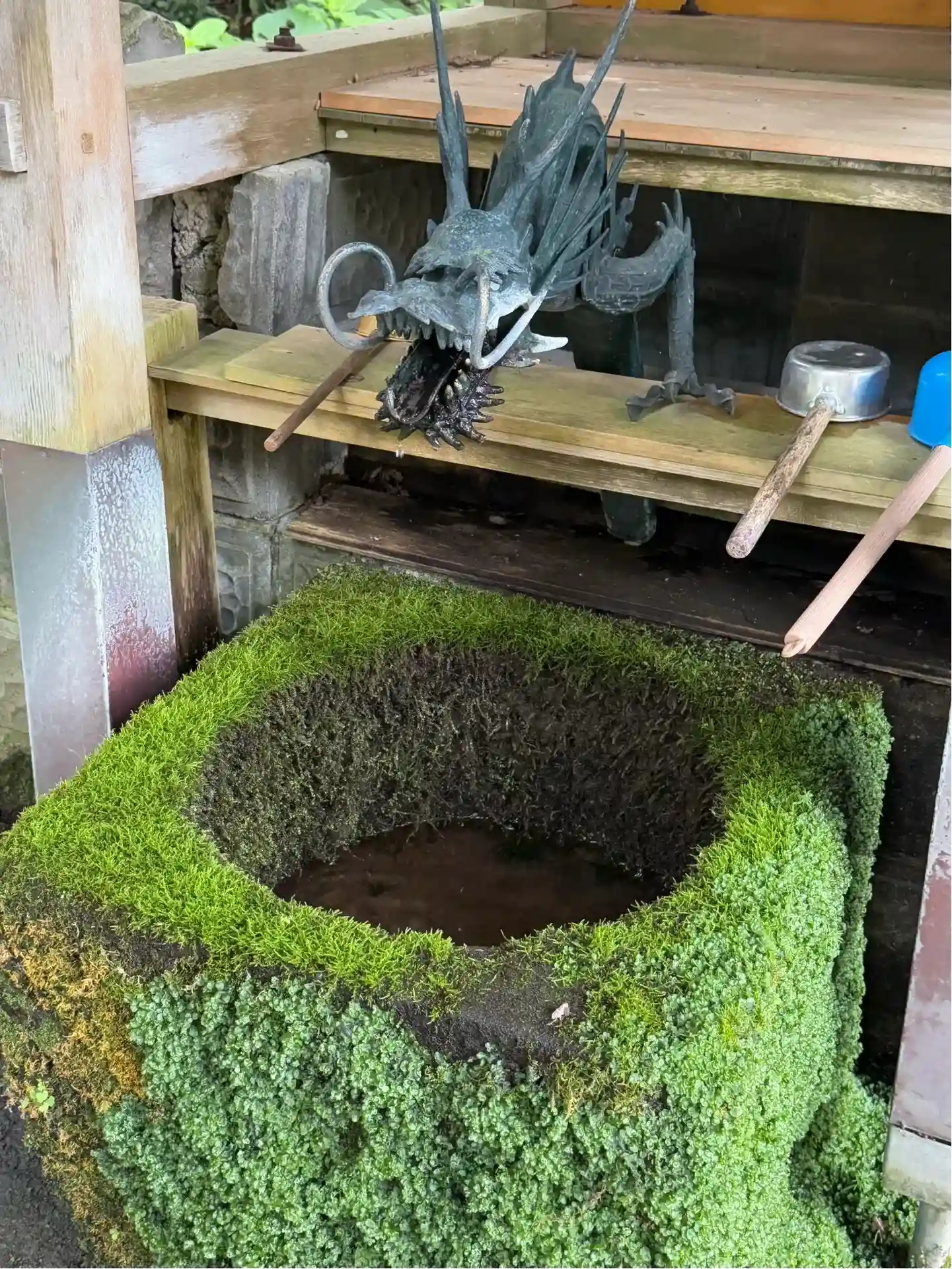 こけに覆われた手水鉢