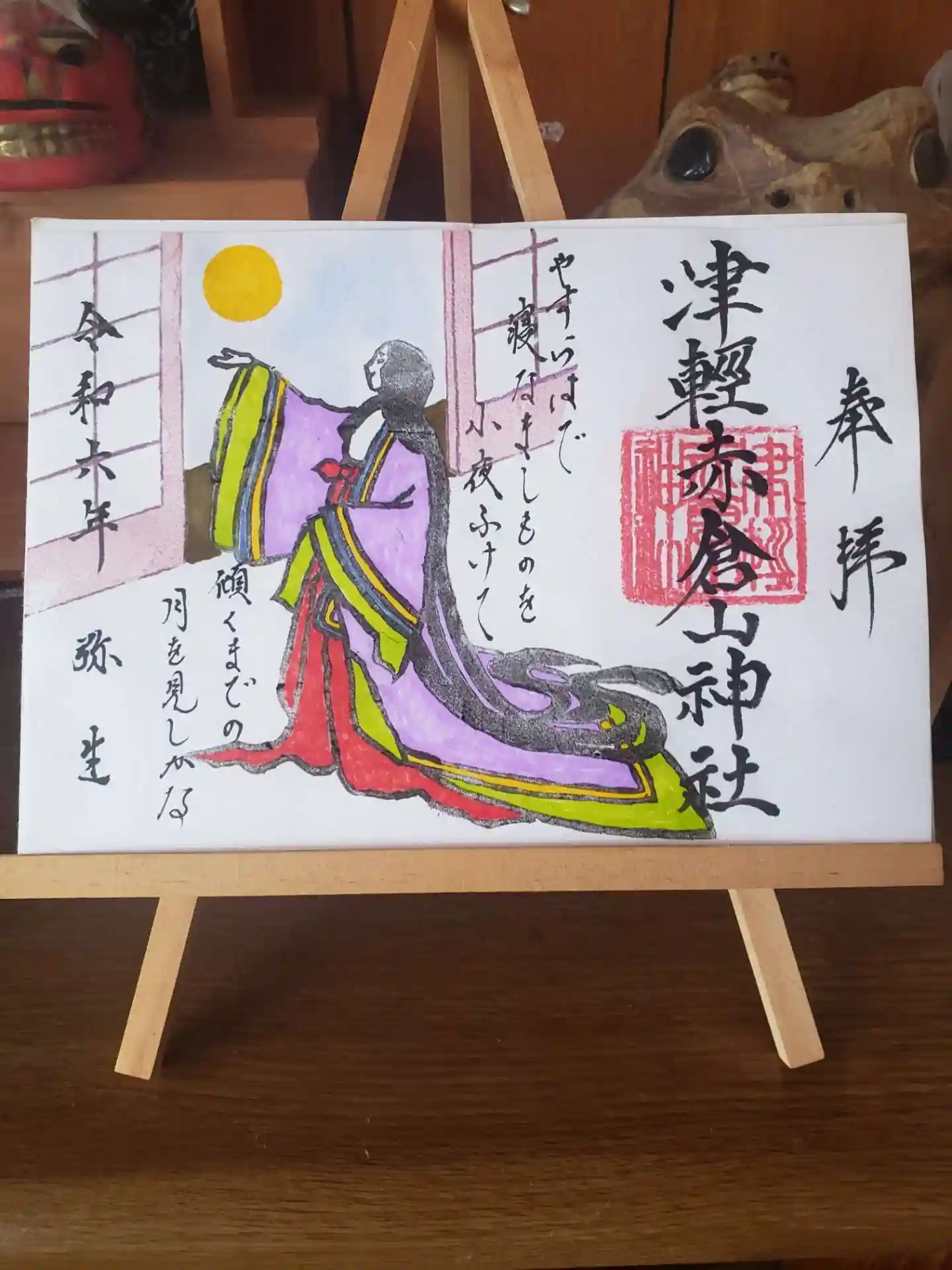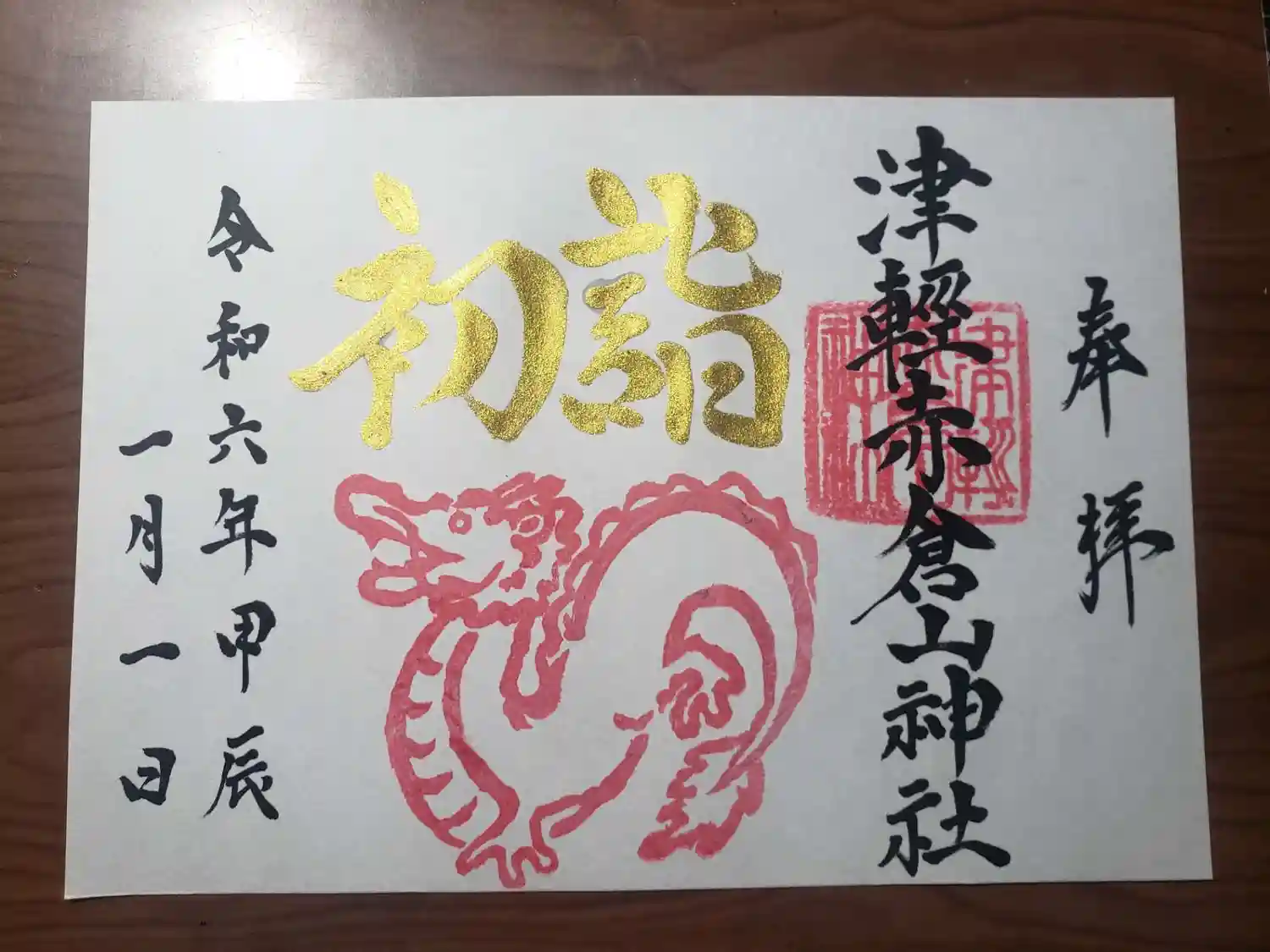 毎月百人一首をテーマにやっておりますが、1月だけは百人一首を離れて、その年の干支をモチーフとした初詣御朱印でございます。
