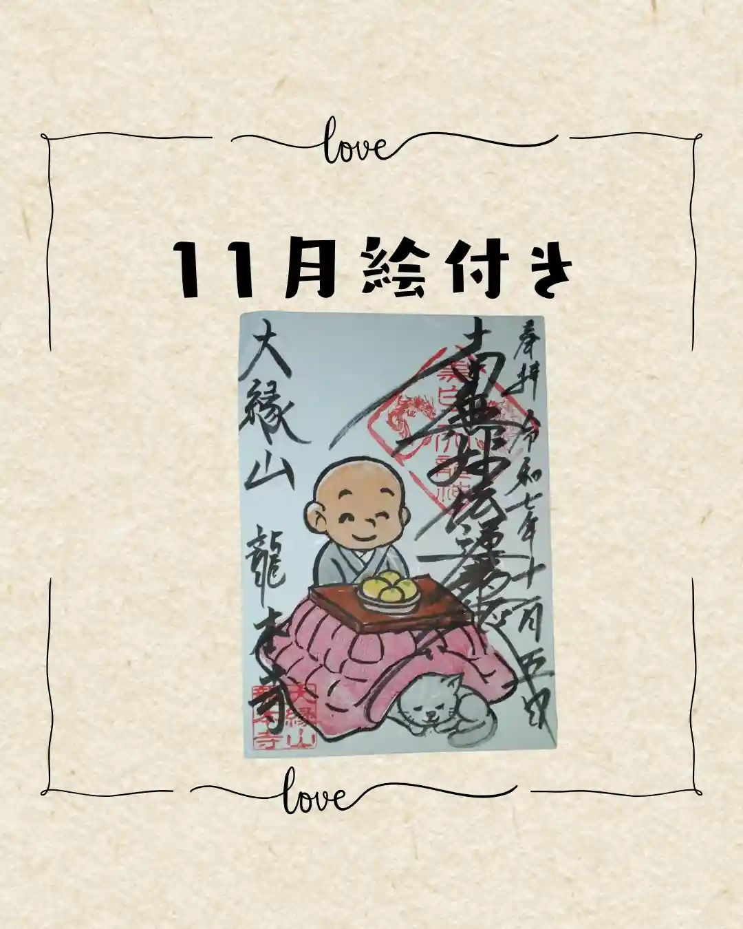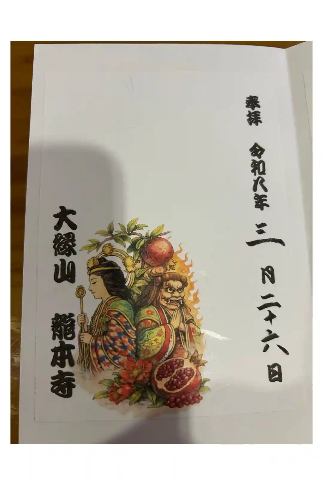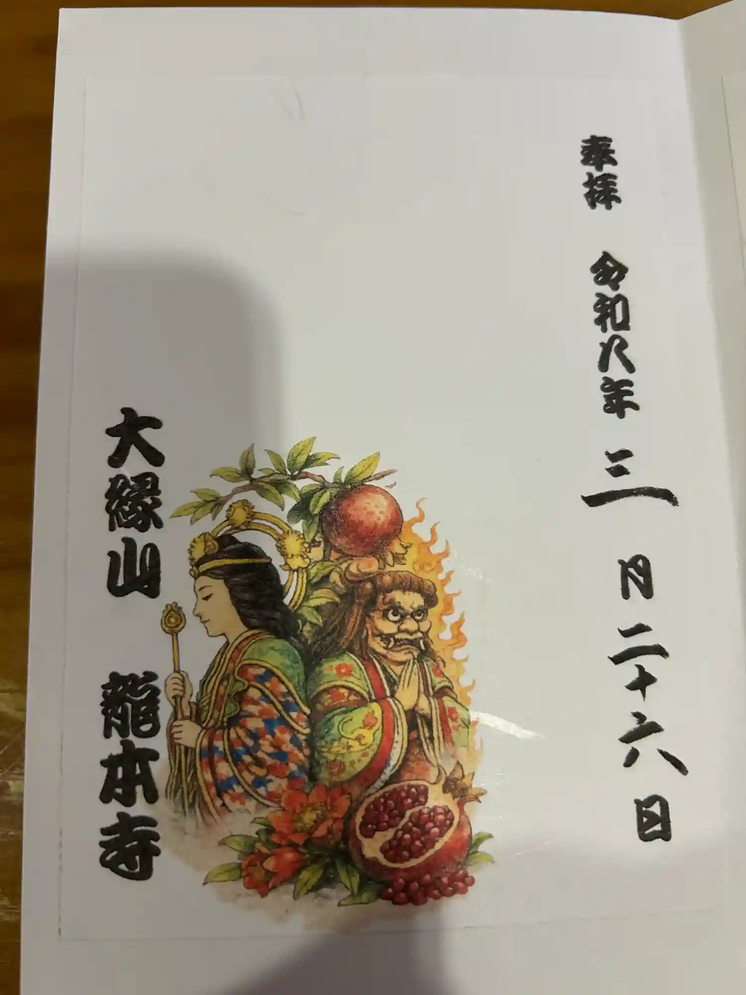 | 御朱印帳に直書き | あり お書き入れは、絵付き御首題を担当している御上人がいるときのみになります。 法務や出張等で書き入れ対応が出来ない場合もあります。 ※不在時は、書き置きのみになります。