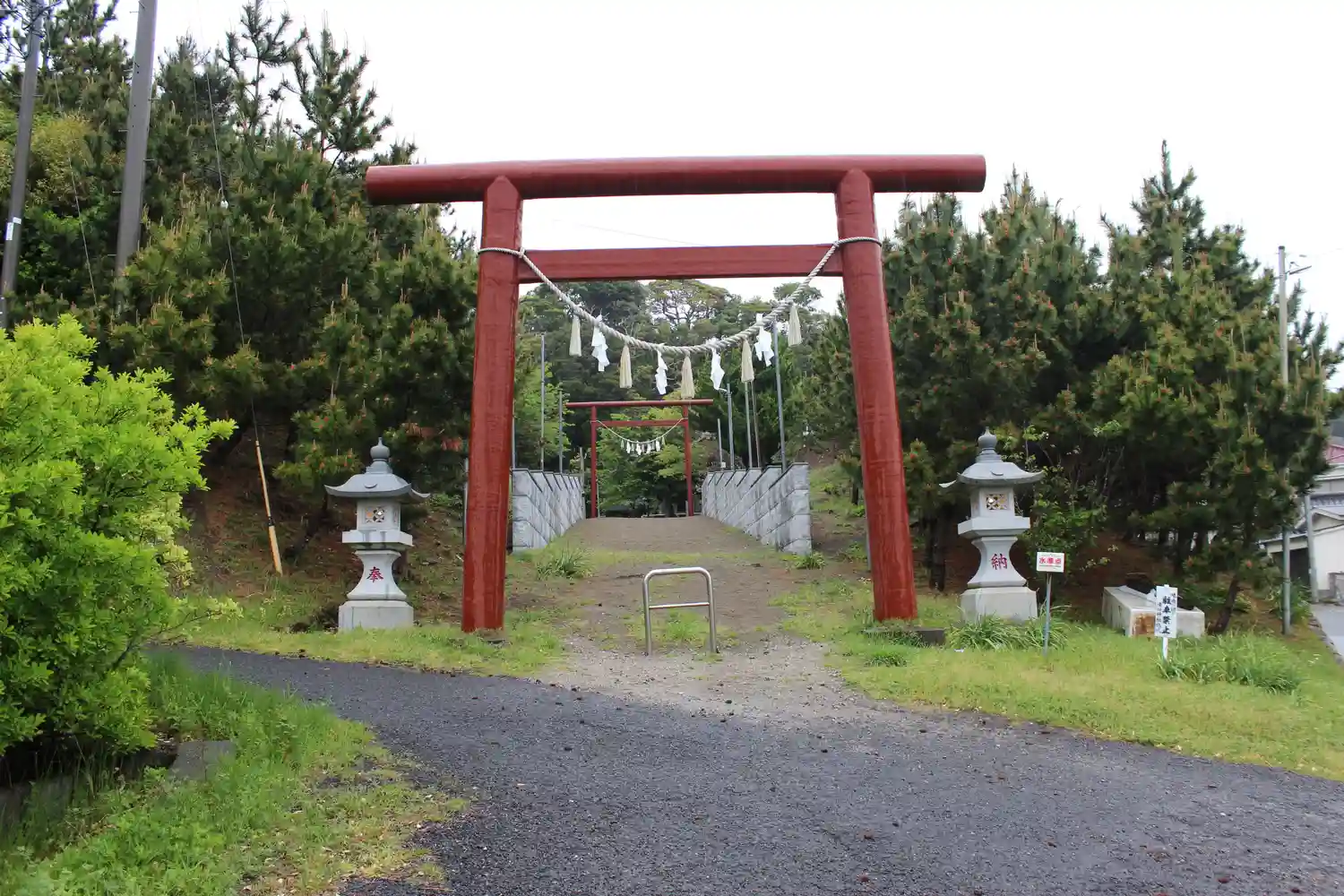 太平洋の海原を臨む緩やかな上り坂が参道。