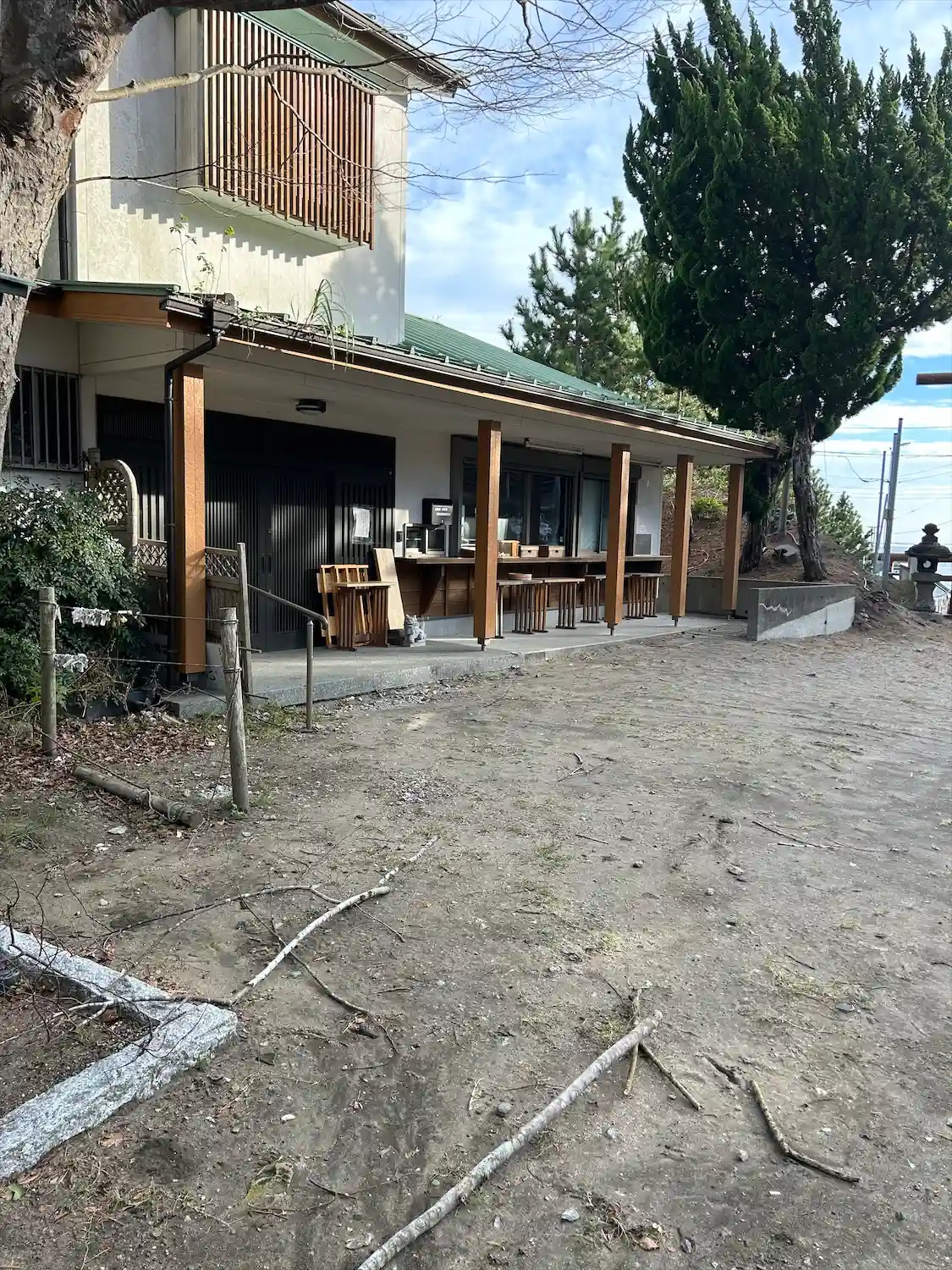 昨日からの強風でしょうか大きな木の枝が手水…