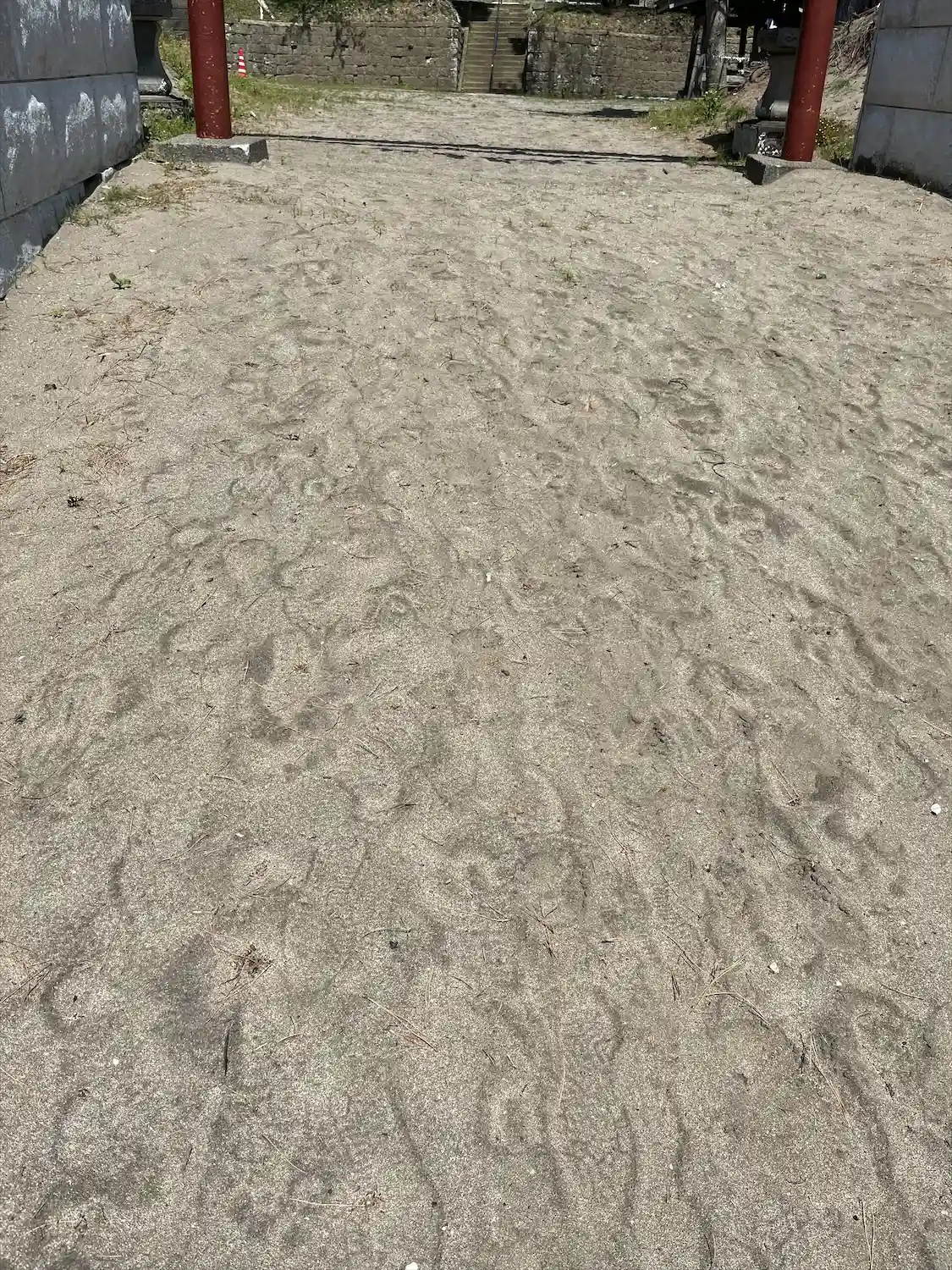 晴れていたら、鳥居の向こうに海原が青く見えたと思います。