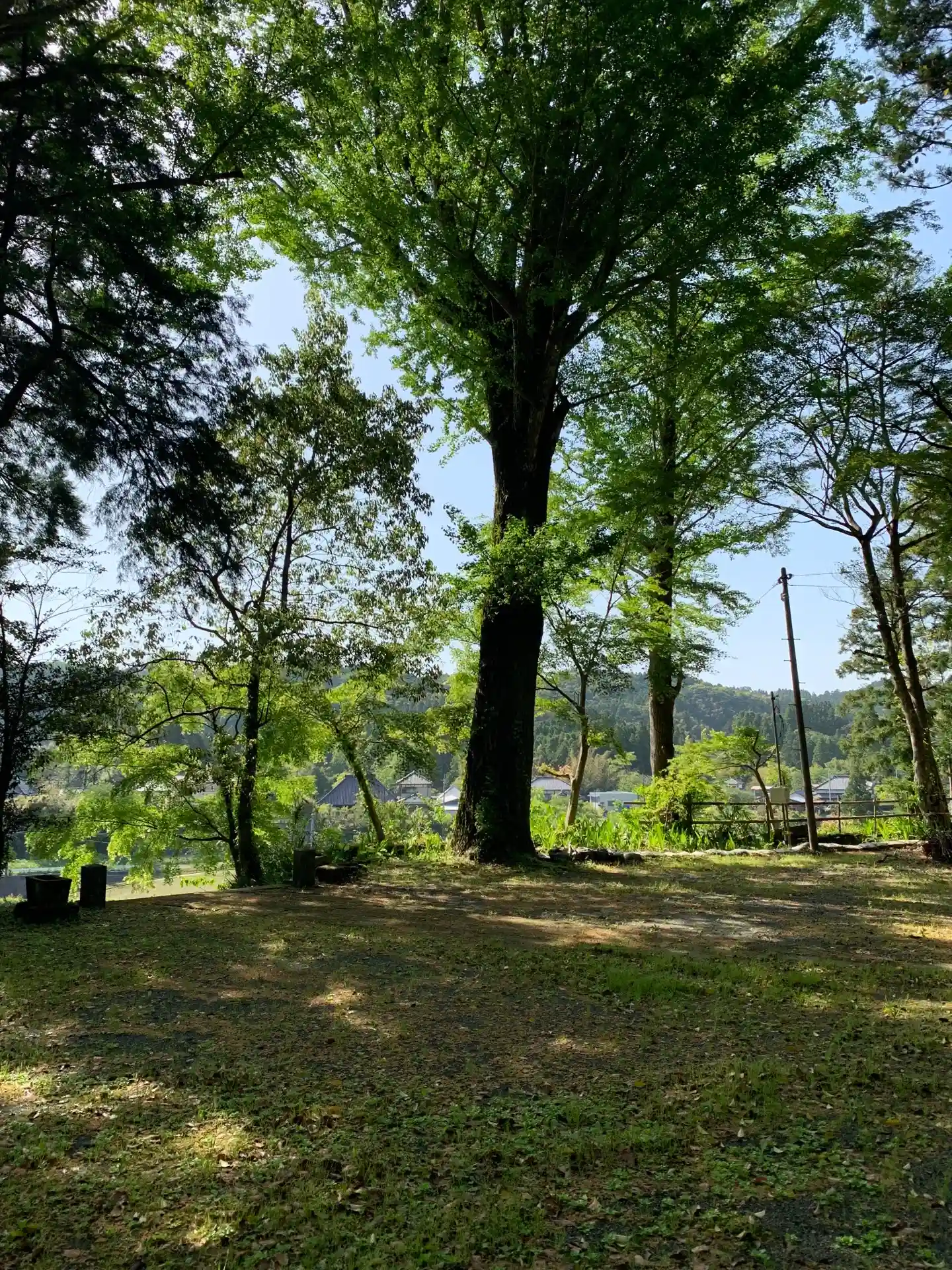 付近で有名な神社のひとつ。広い境内には、大木とまではいかなくても大きな木々が聳えています。屋根は重…