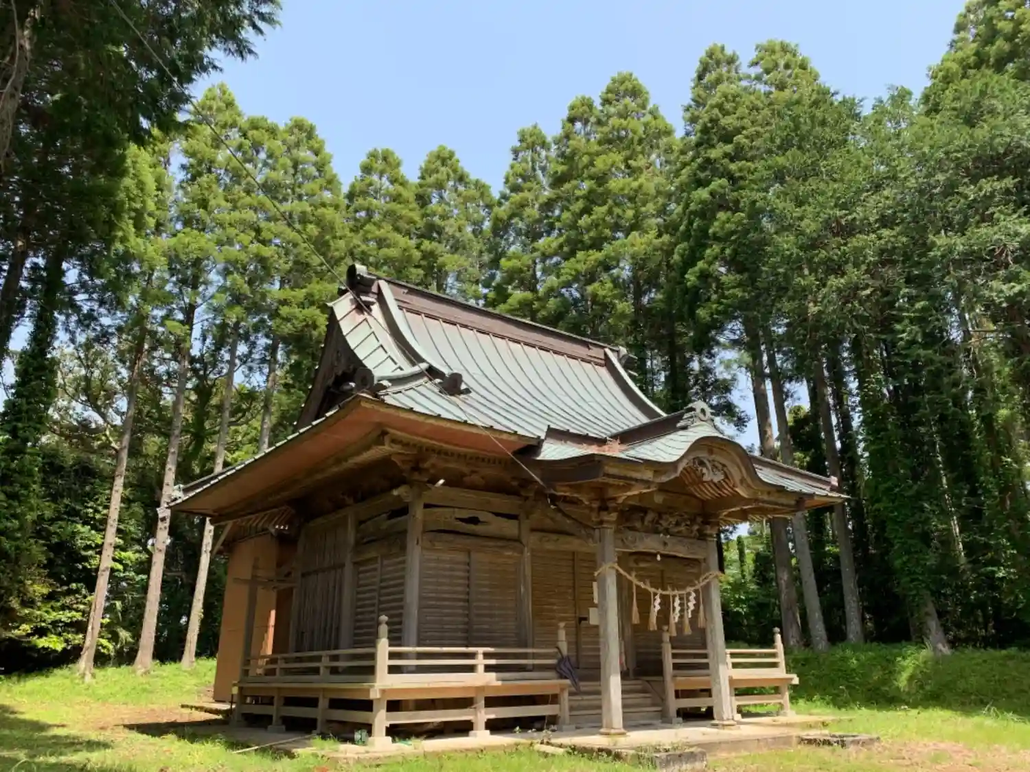 石段を登ると開けた境内に杉の木が列をなしている風景が目に入ります。
