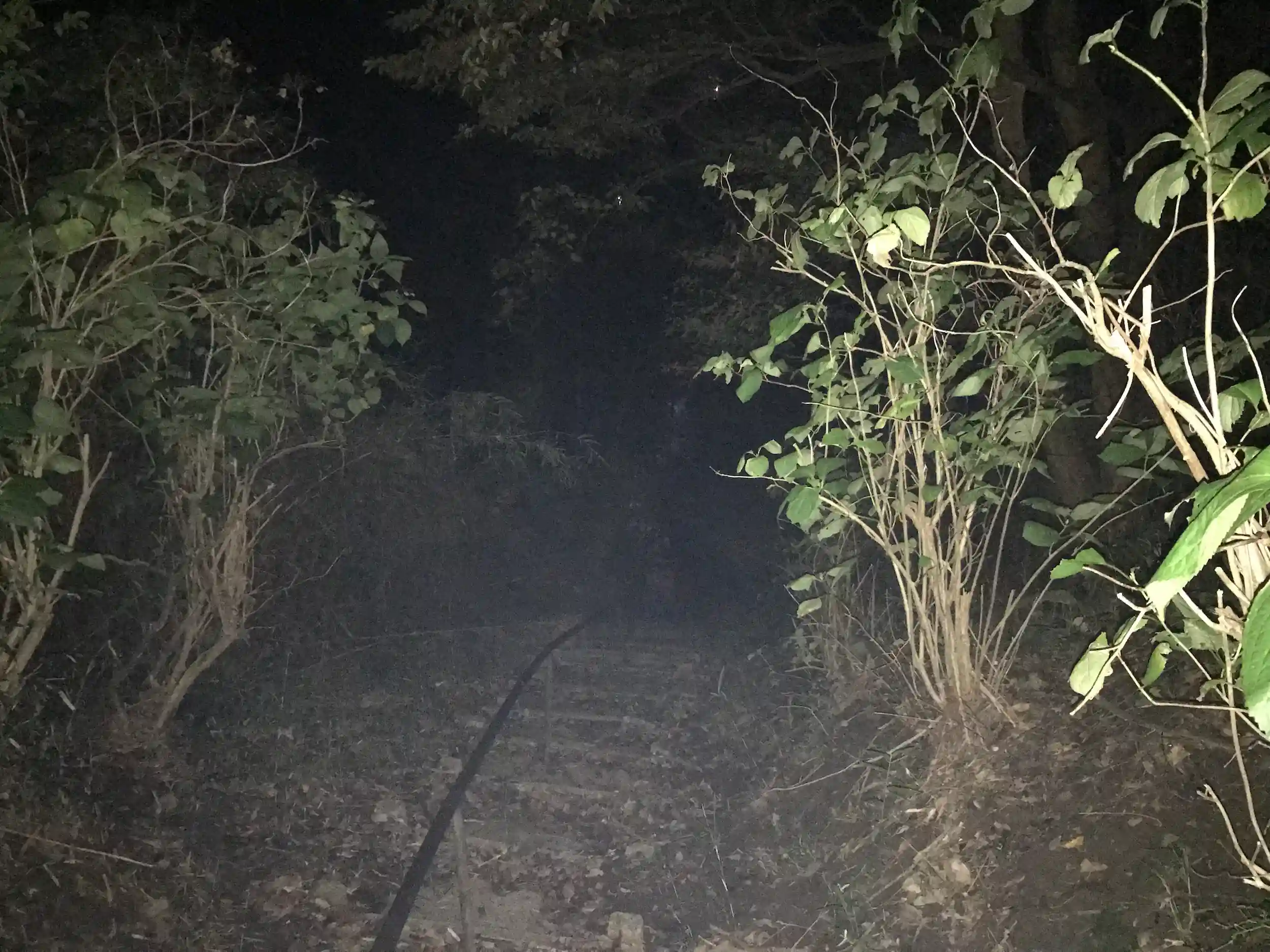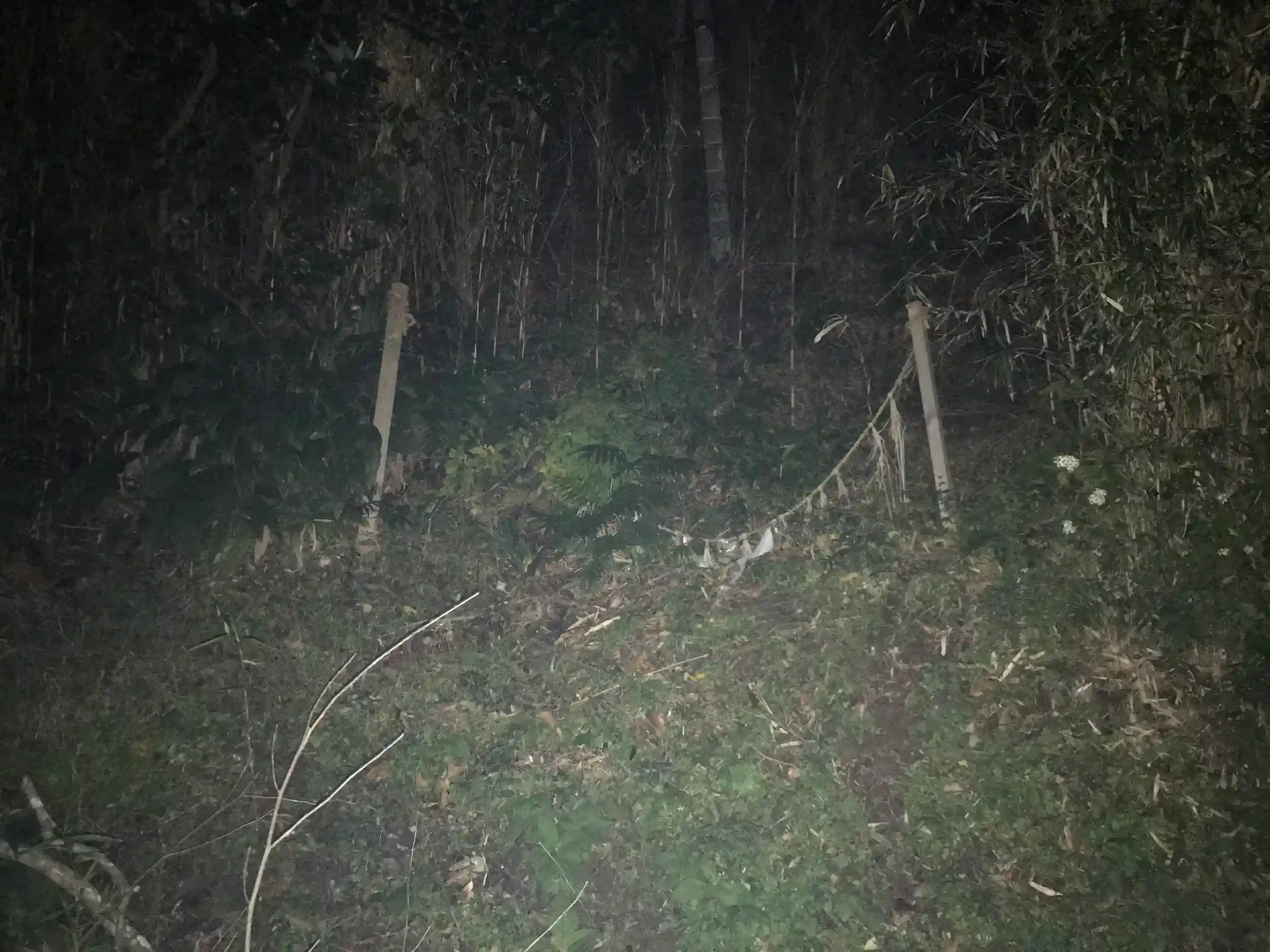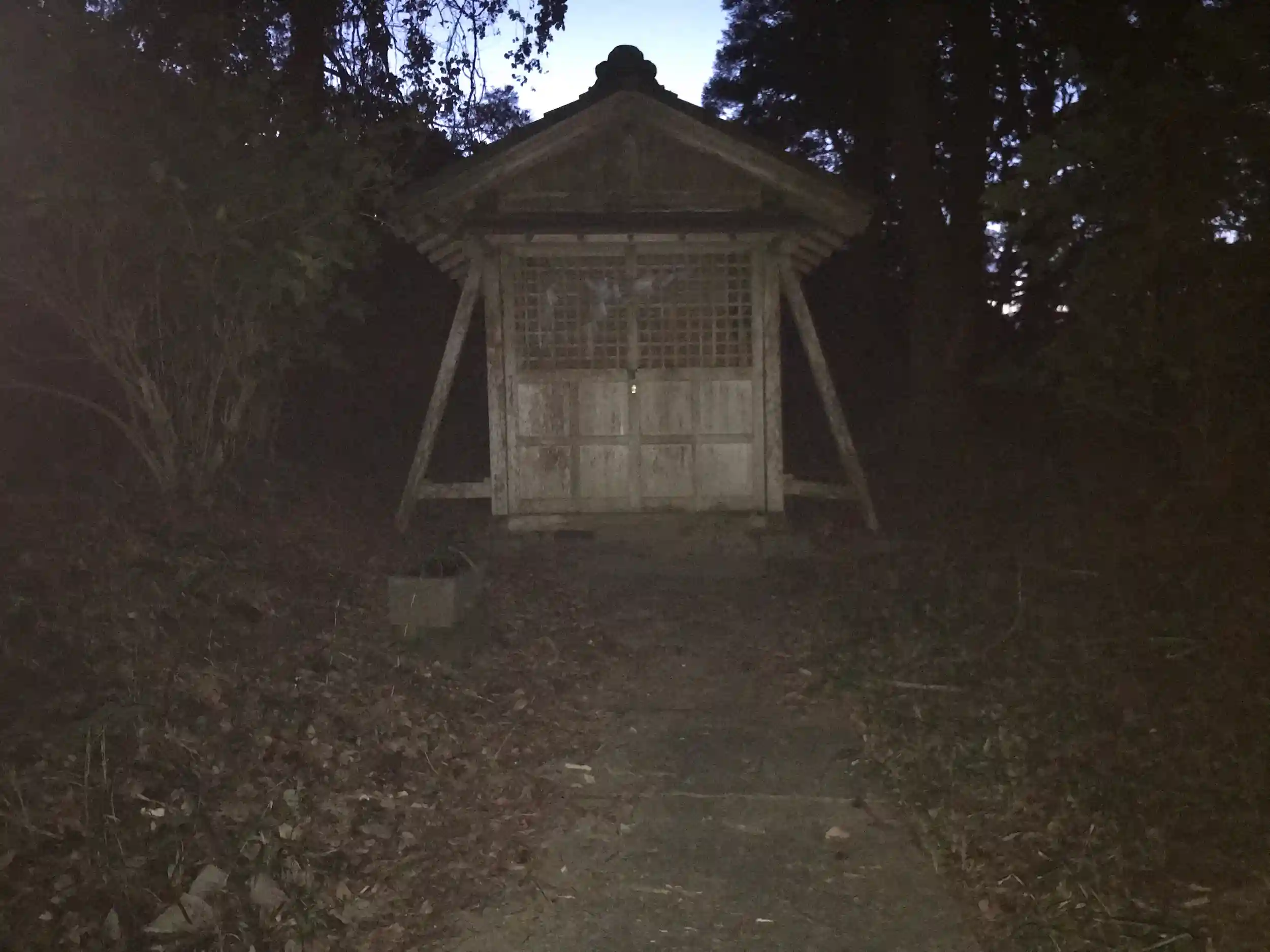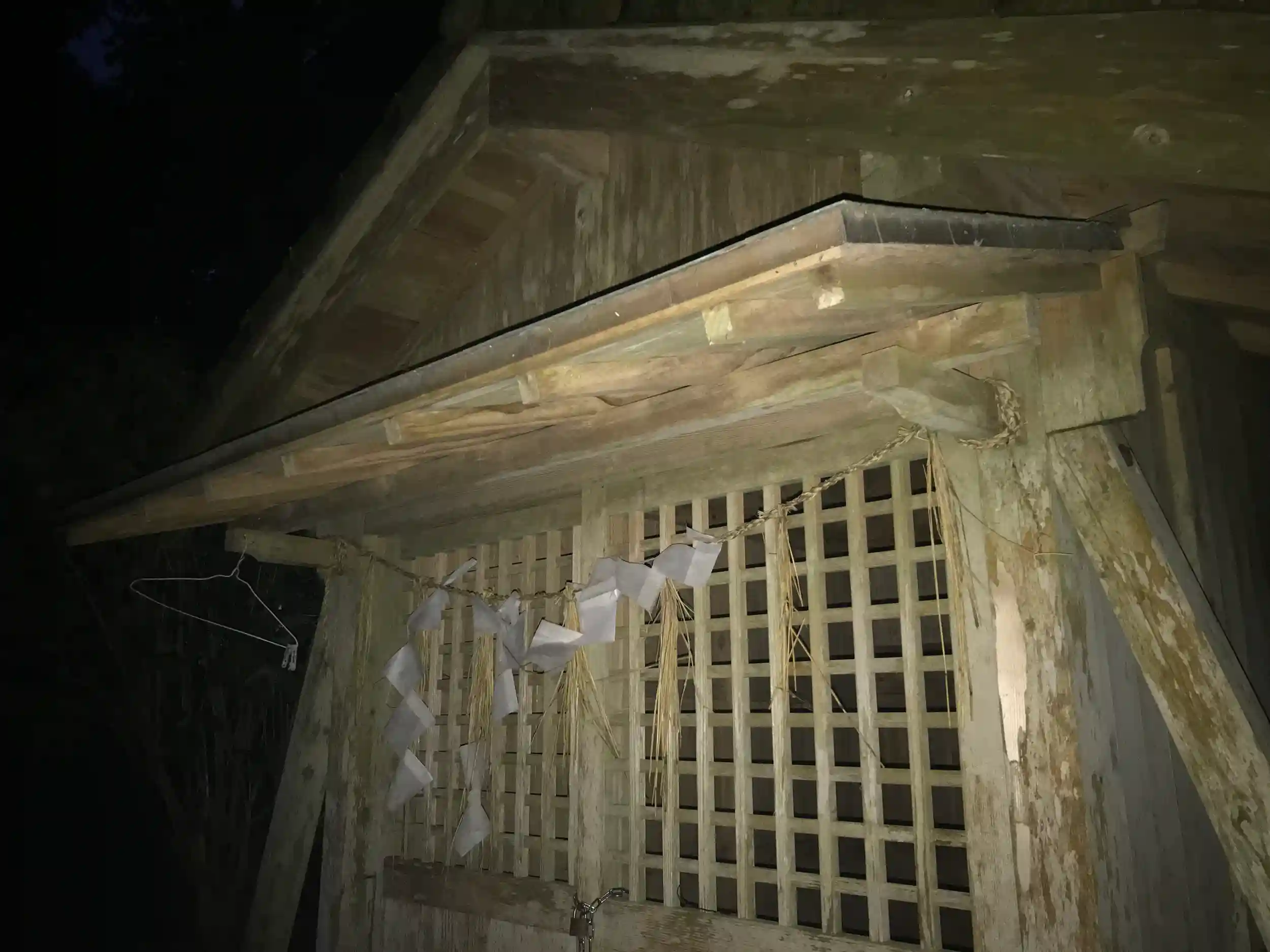 鳥居から左折して1分もしない辺りに謎の藁紐が張ってありました。さすがに向こうが全く見えないので探検は断念しました。