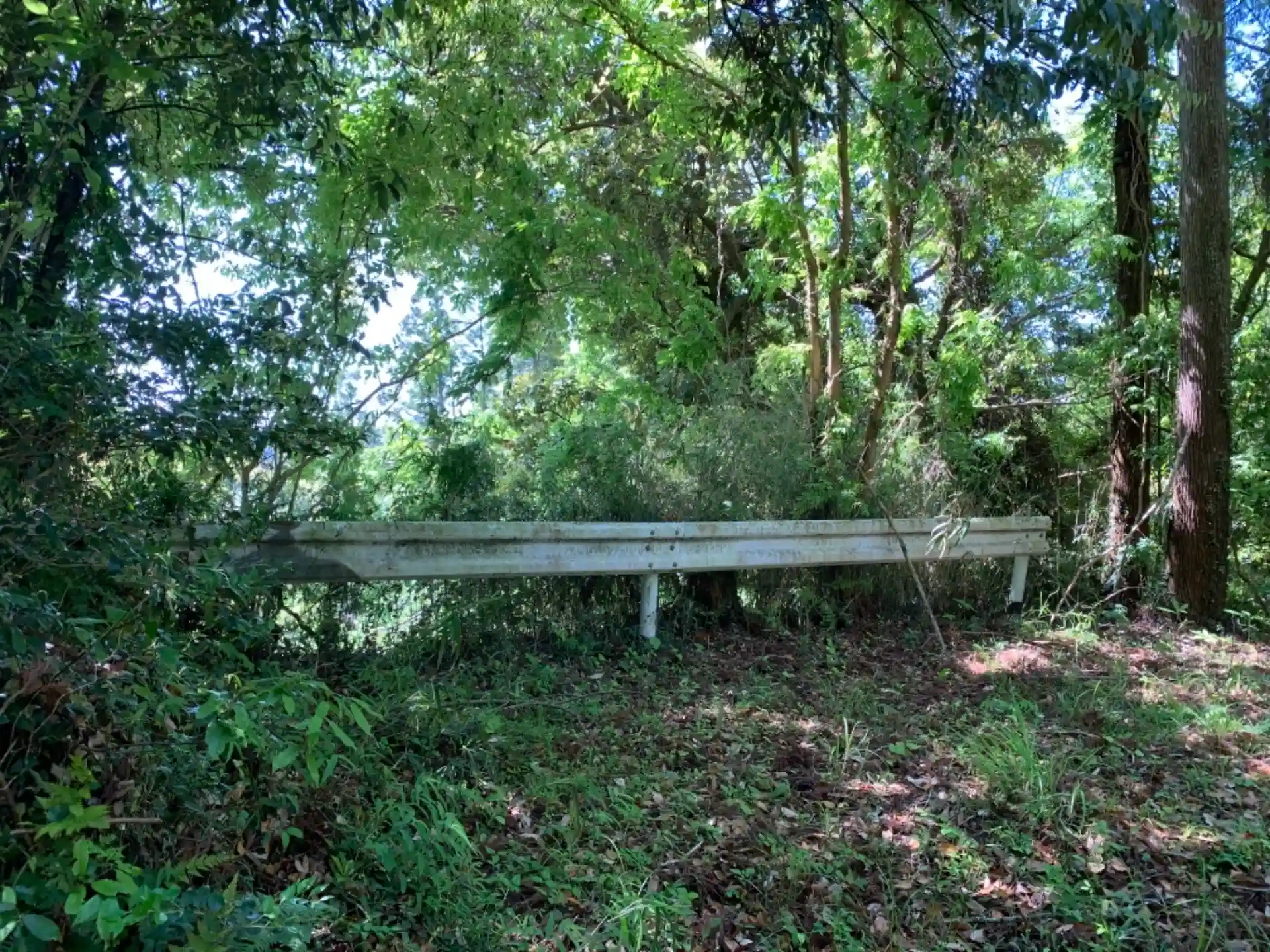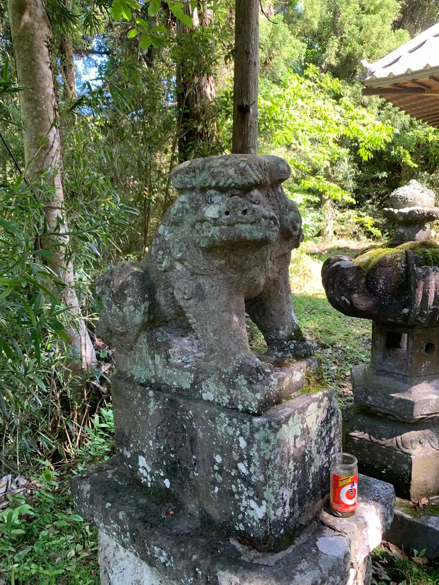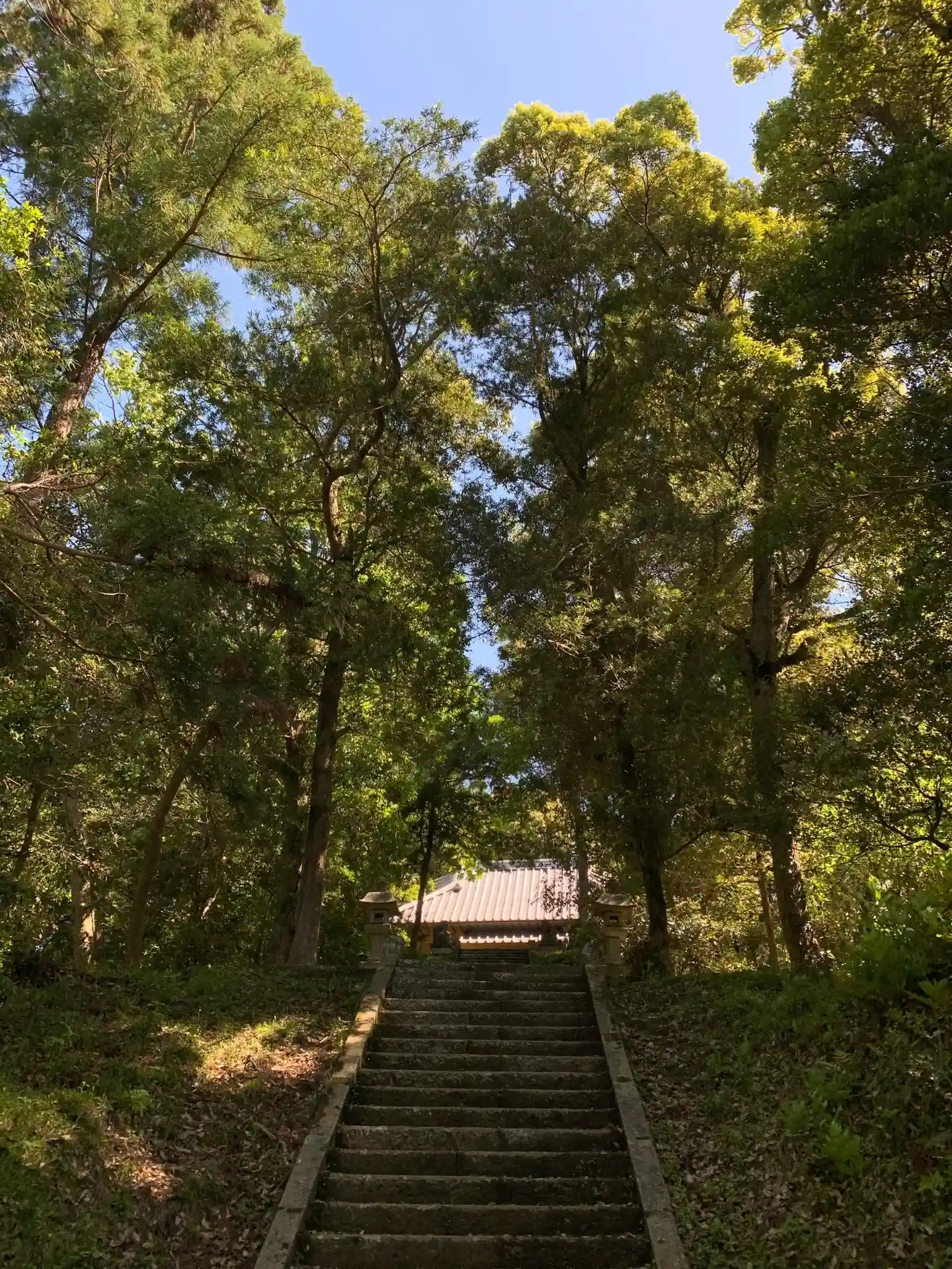 鎖が掛かってて車では入れません。森の中の古びた石段は幻想的でした。