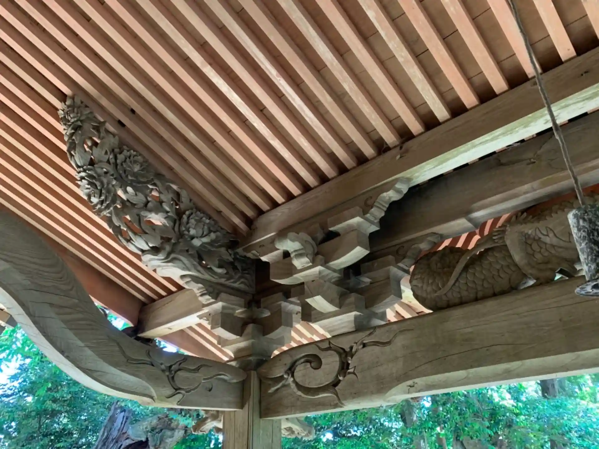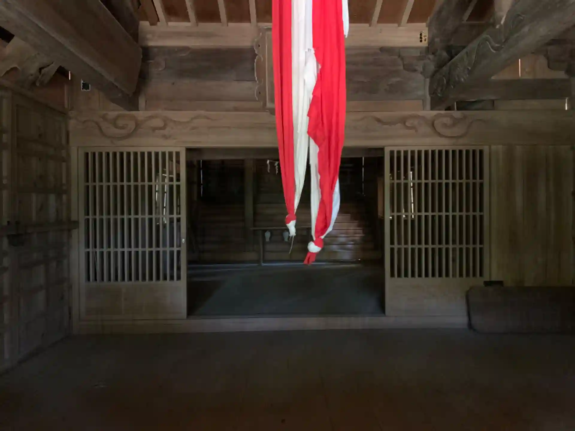 社殿の中を覗き込むと、天井に龍のようなものが描かれていました。天井画がある神社は珍しく、さすがの社格といったところでしょうか。