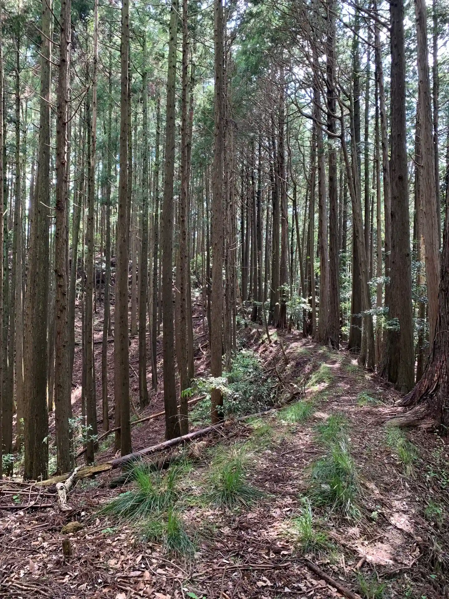 ここへ至る道は最初は水が流れ落ちてぬかるんでいますが、山の中に入れば歩きやすい尾根道です。おそらく古道と思われます。車道が整備される前、老川と筒森を繋ぐ大事な道だったのではないでしょうか。