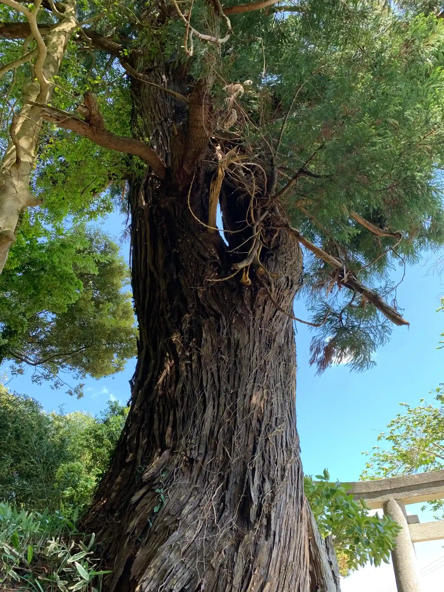鳥居脇の杉の木は樹齢300年近くあるのではないでしょうか。写真では伝わりませんが中々の迫力でした。