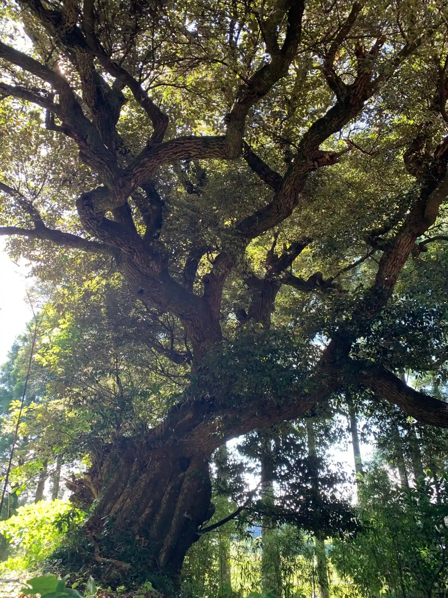 境内の隅に椎の巨木が聳えていました。