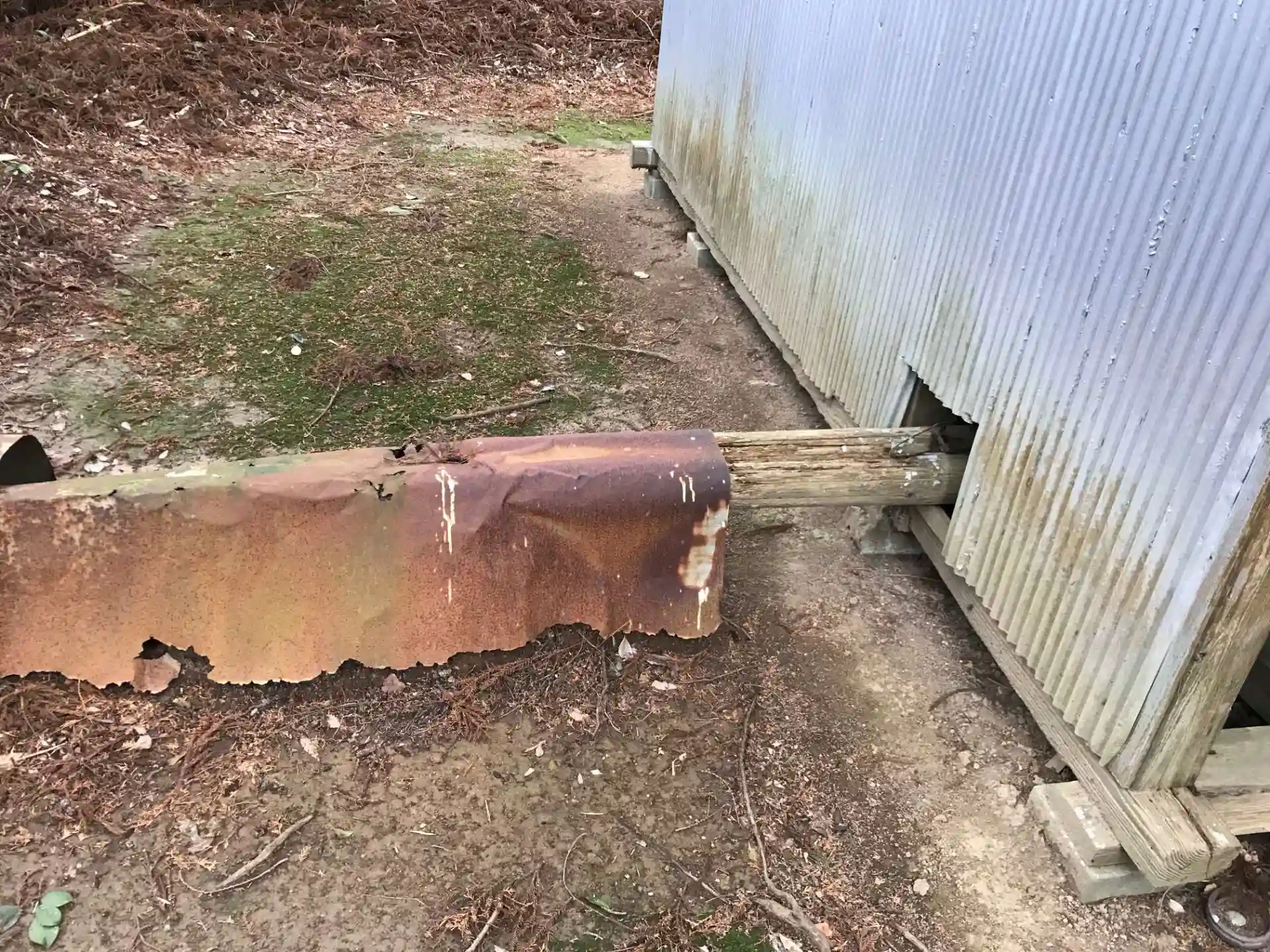 床下に収納しきれなかった部材を保護していると思われる鉄板。