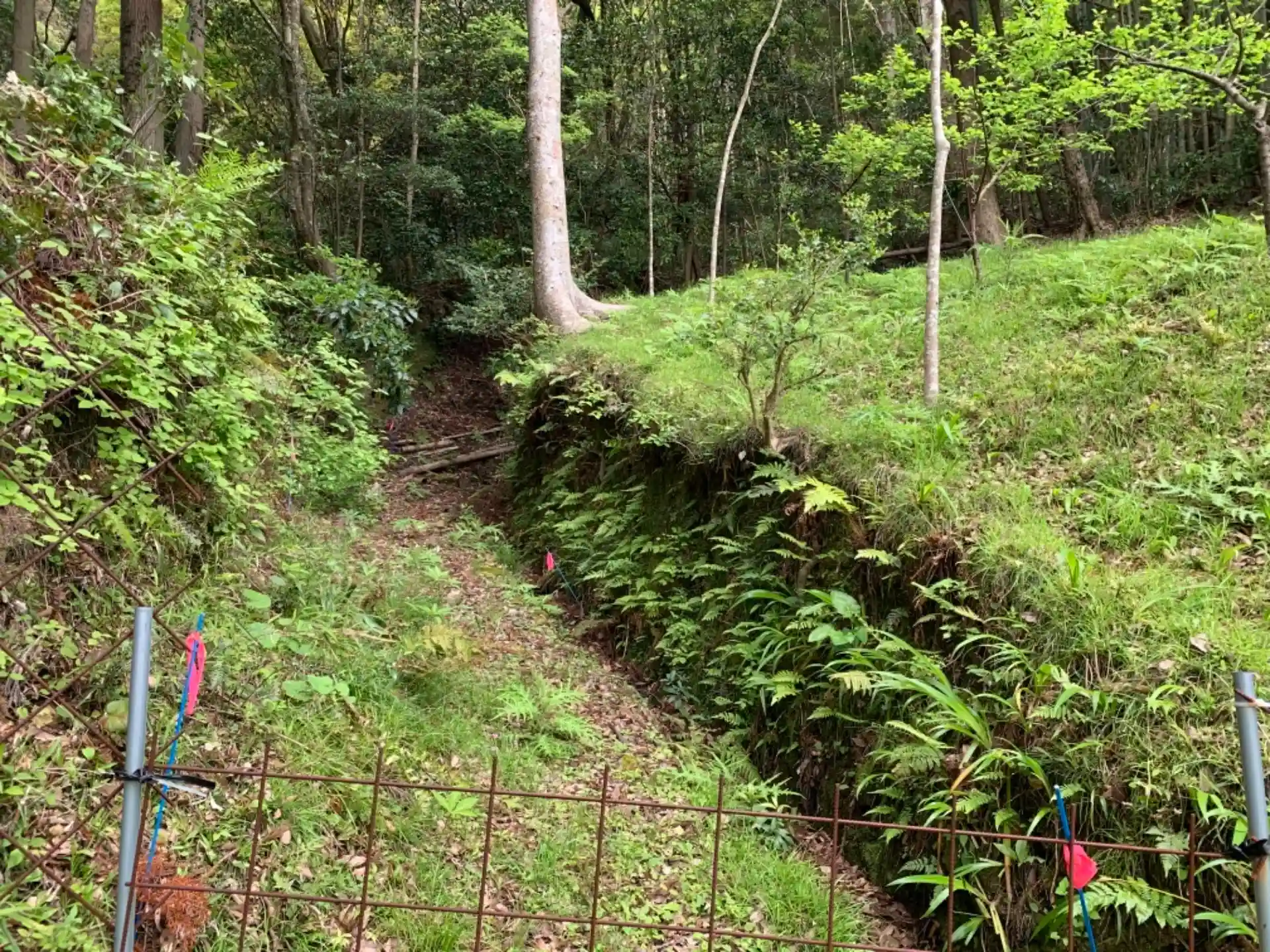 裏山にあるらしい神社へ行くために獣避け柵沿いに探索してみましたが、入れそうな場所はありませんでした。