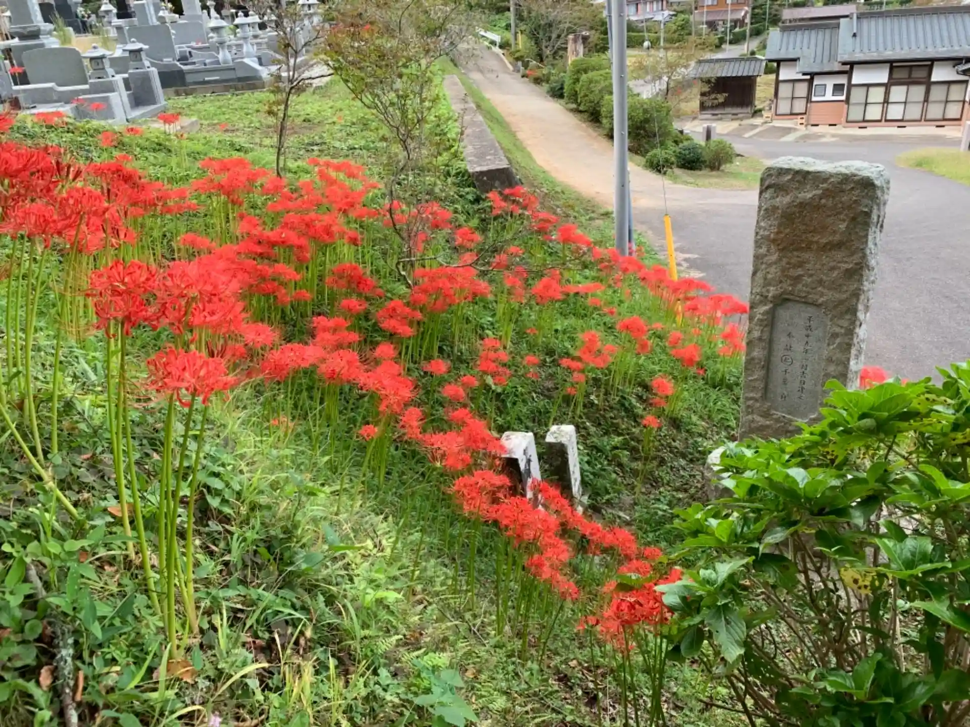 背後の勾配も、よく見るとたくさん咲いています。肉眼で見ると緑に赤がよく映える。