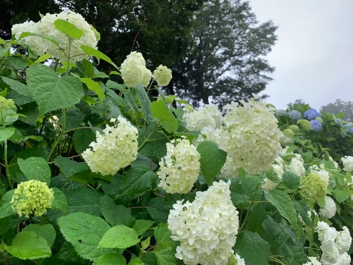 左側の低木がすべてアジサイ。