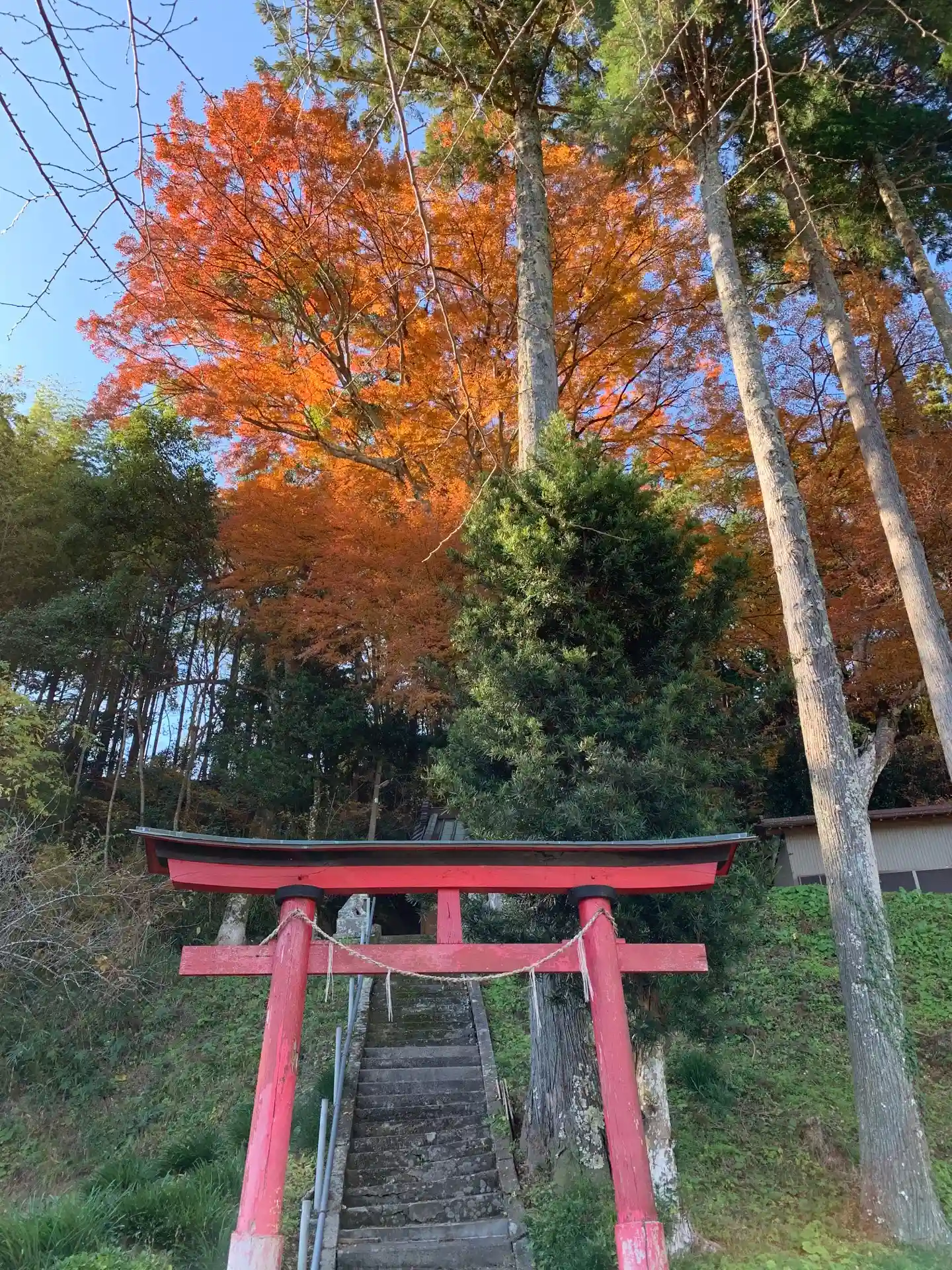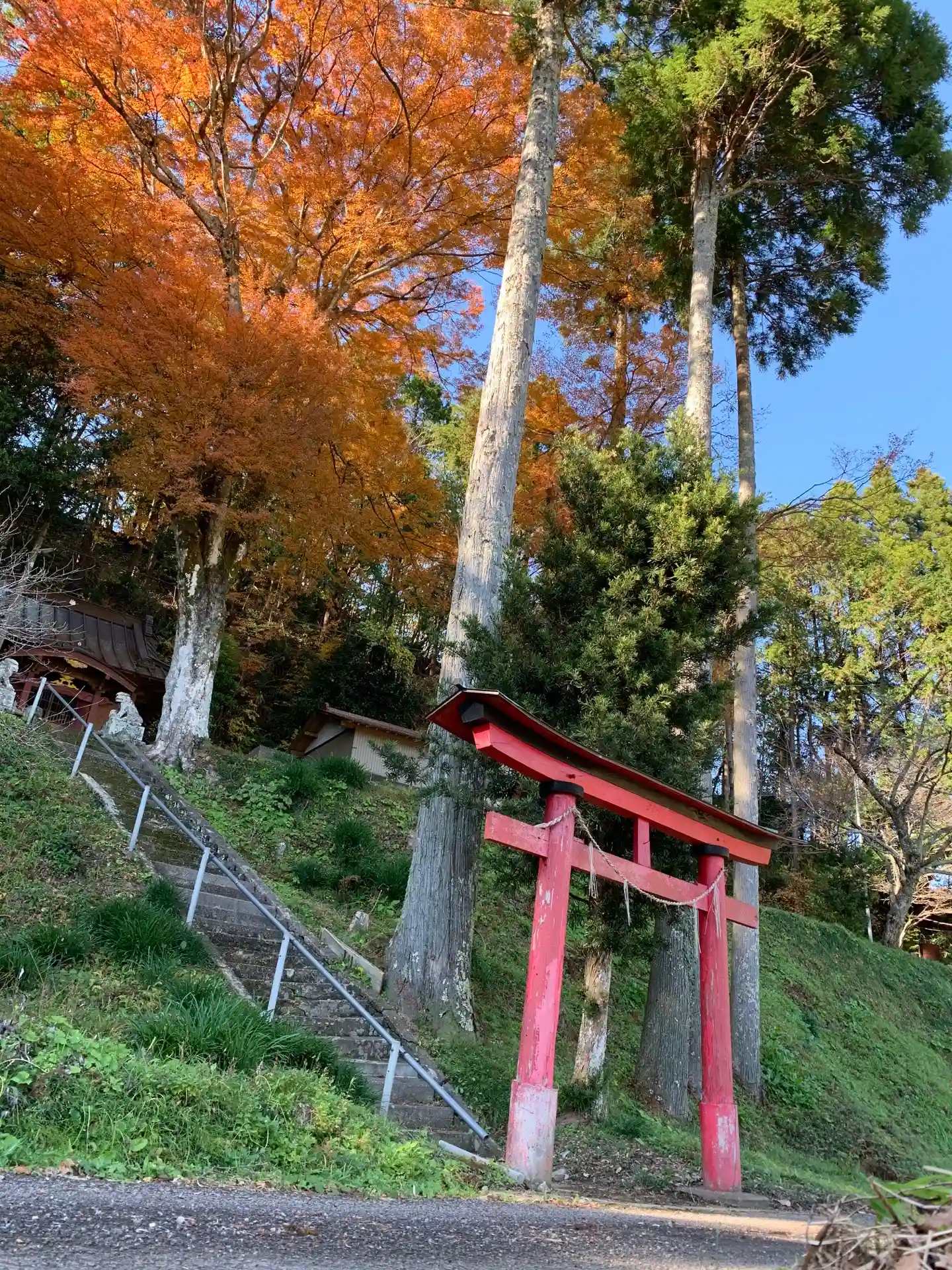 根元にいる方の狛犬は、この紅葉を見ることができません。せつない。
