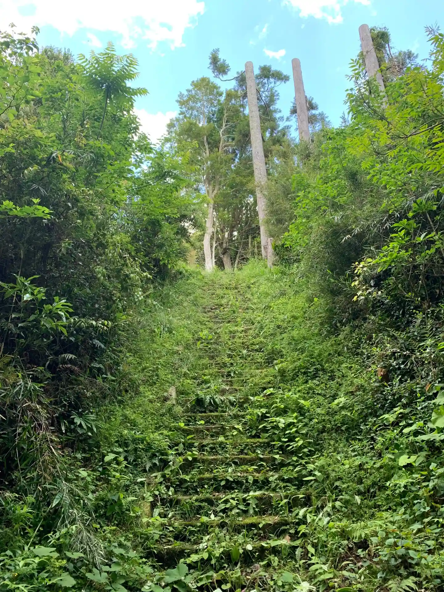鬱蒼とした緑の中に石段があり、登ると簡素な本堂があります。