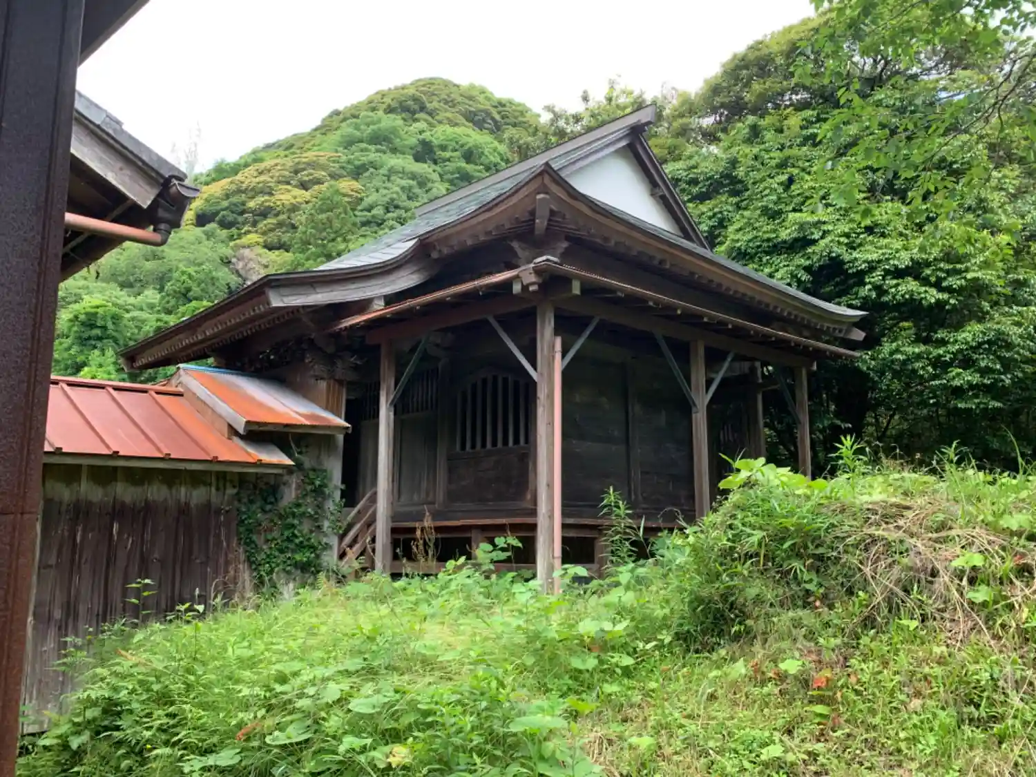 古びた石段を登ると集会所みたいな拝殿があります。避難所になっており、中には祭囃子の太鼓指南の黒板などがあったので事実集会所がわりなのかもしれません。