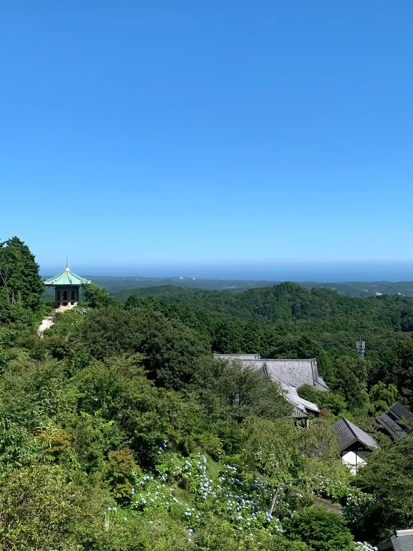 日蓮聖人が題目を唱えた場所として知られ、また20万本の紫陽花が斜面いっぱいに広がっています。