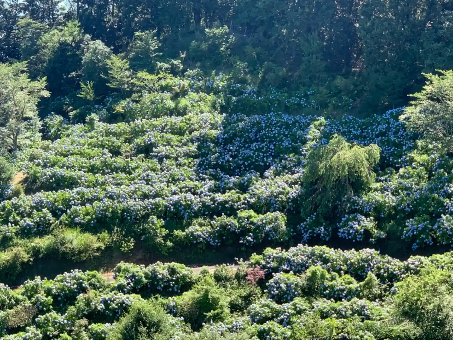 斜面一杯のアジサイで有名。