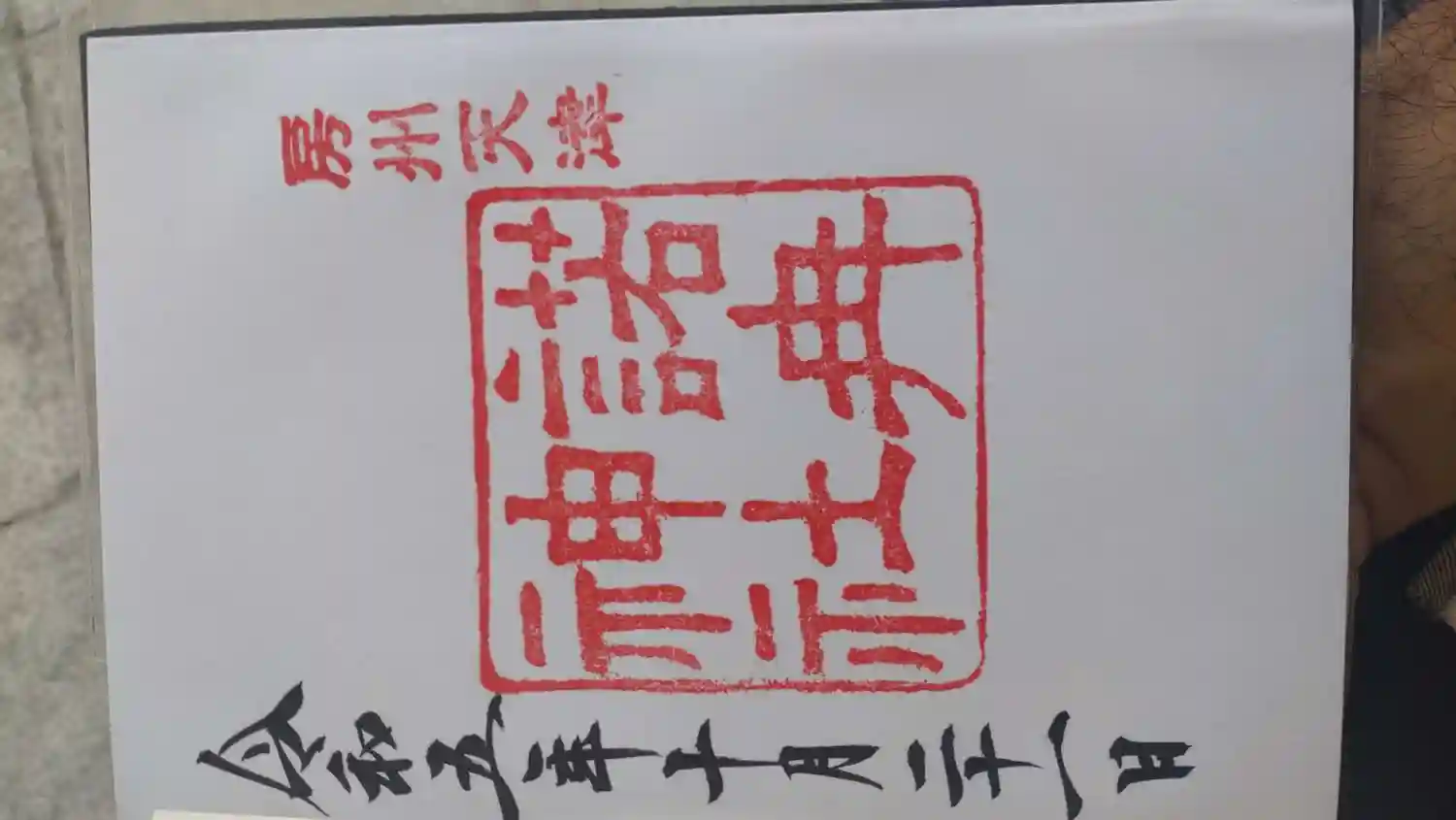 天津神明宮でいただけるもう一つの御朱印/宮司さん手ずから木を彫った印だそうである/この大きさの篆刻は多分相当大変だったはず