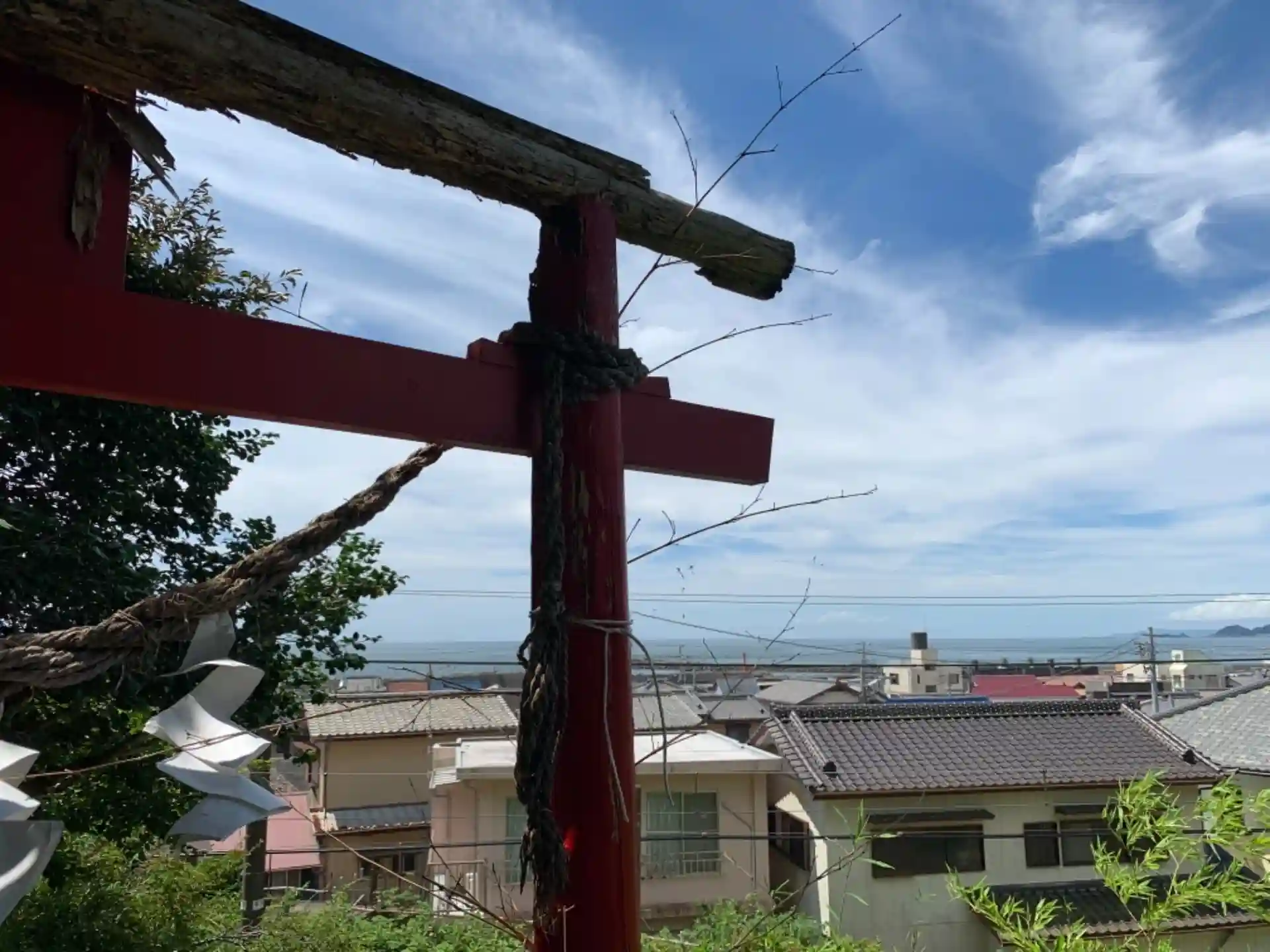 線路を跨がないと参拝不可能な神社。よく見て聞いて列車が来ないことを確認してから渡りましょう。日澄寺の裏の墓地から入れます。