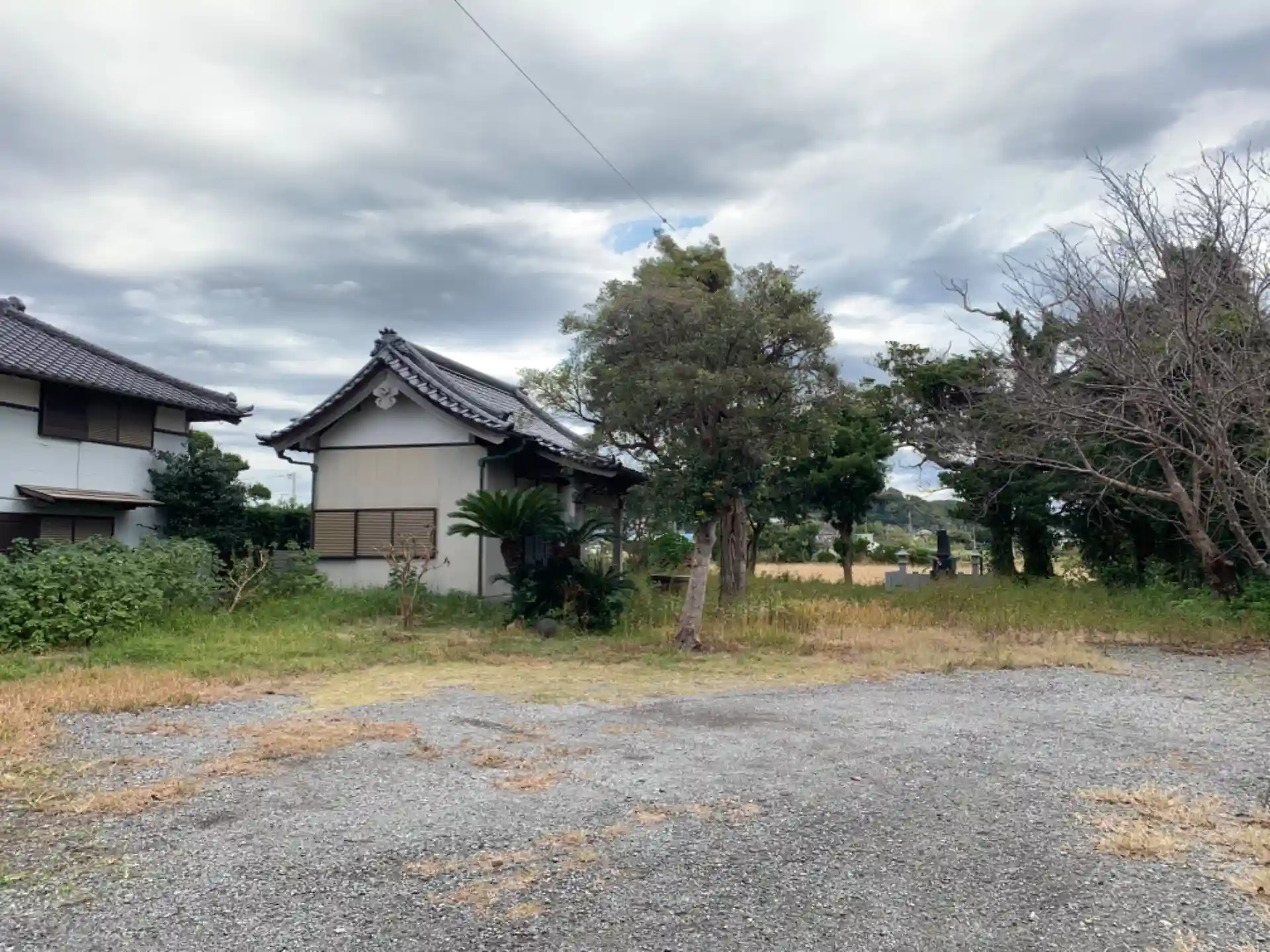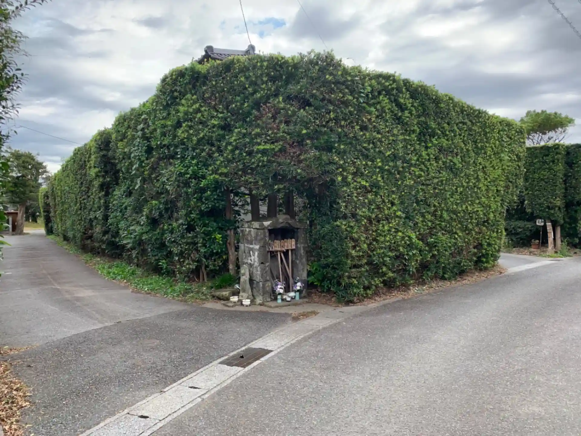 国道沿いの集落にあるお寺。入口には地蔵が佇んでいます。