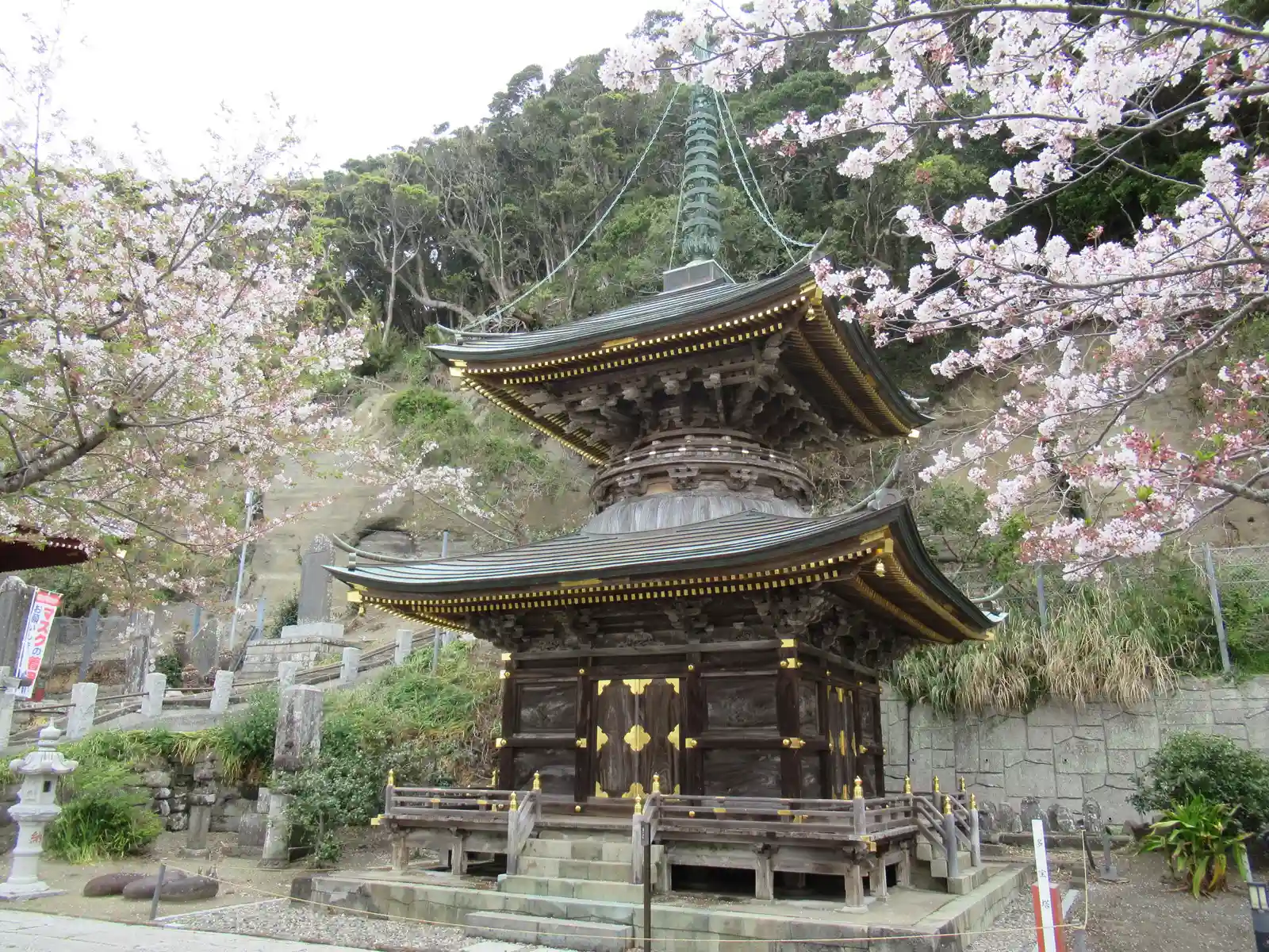 境内から海を臨む景色や崖の下に建つお堂など見応えがありました。