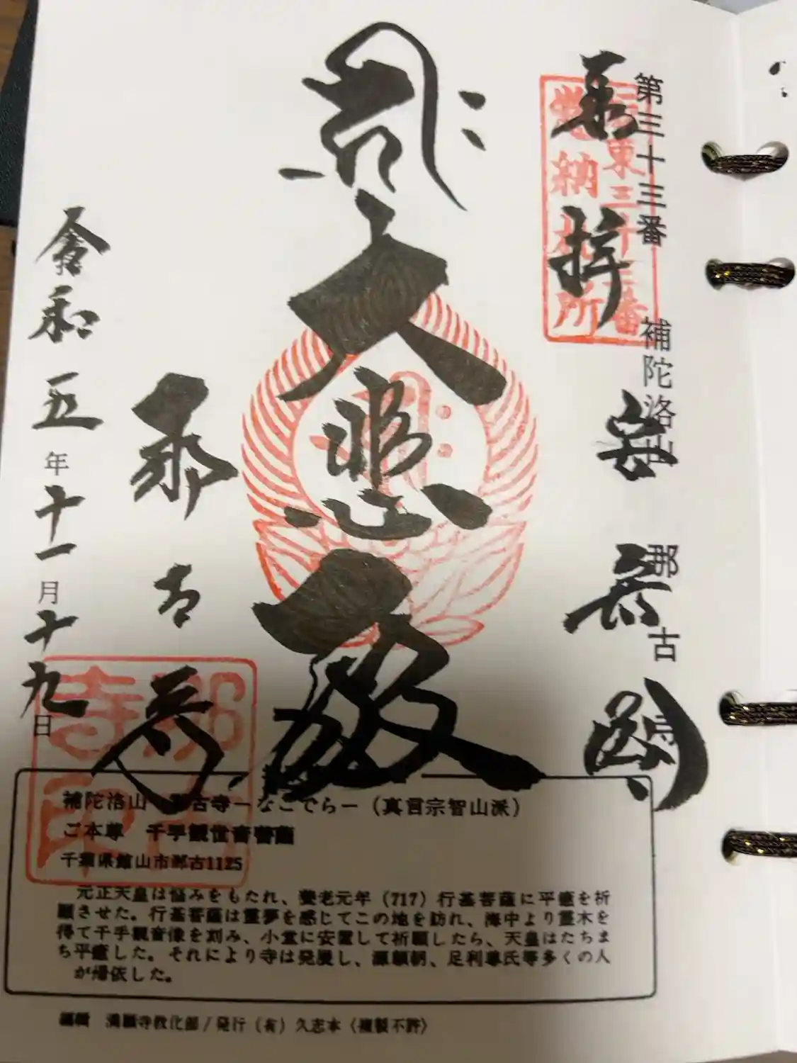 那古寺の御朱印を戴いてきました