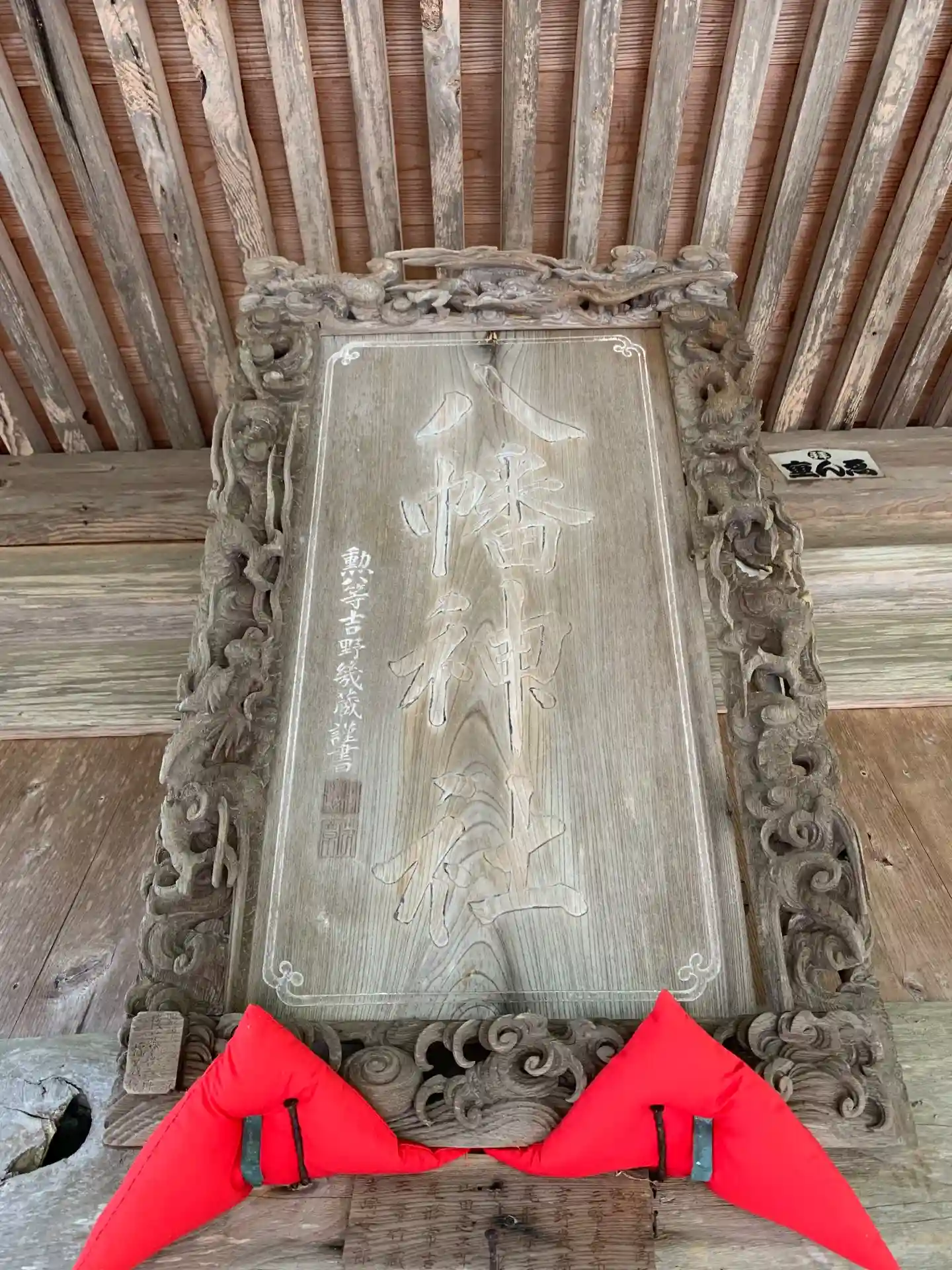 扁額には龍が彫られています。作者は後藤喜三郎橘義信。