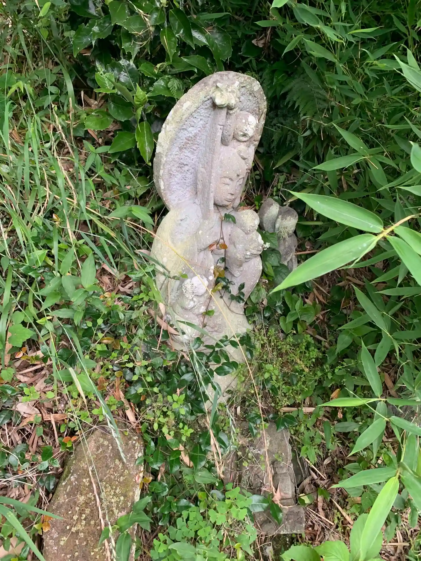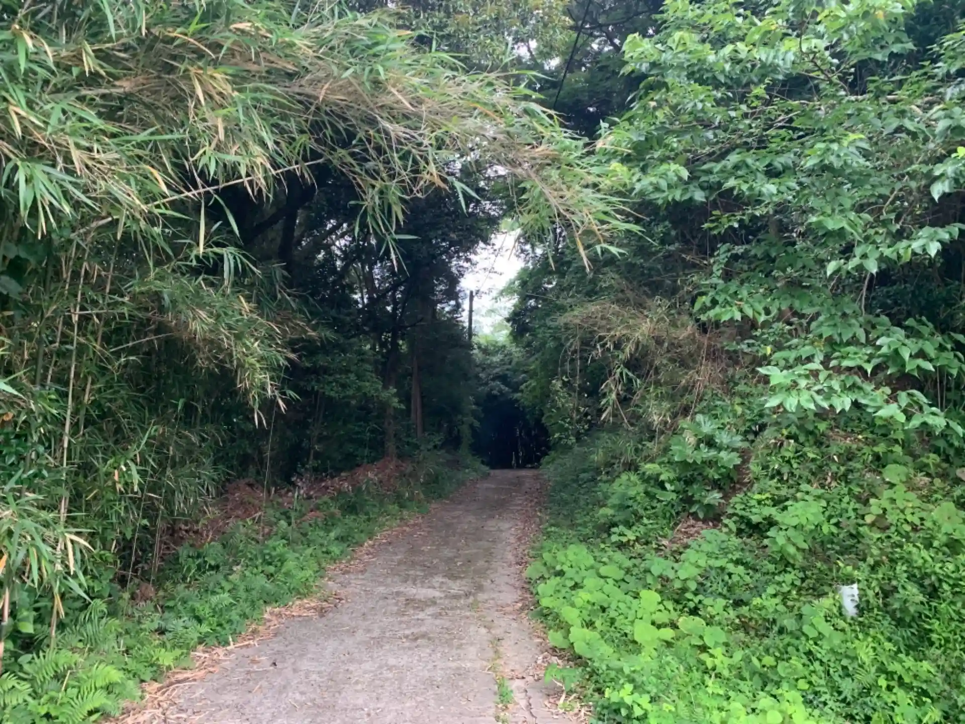 不思議な冒険始まりそうな雑木林のトンネルの向こうに墓地があり、坂を登るとあります。