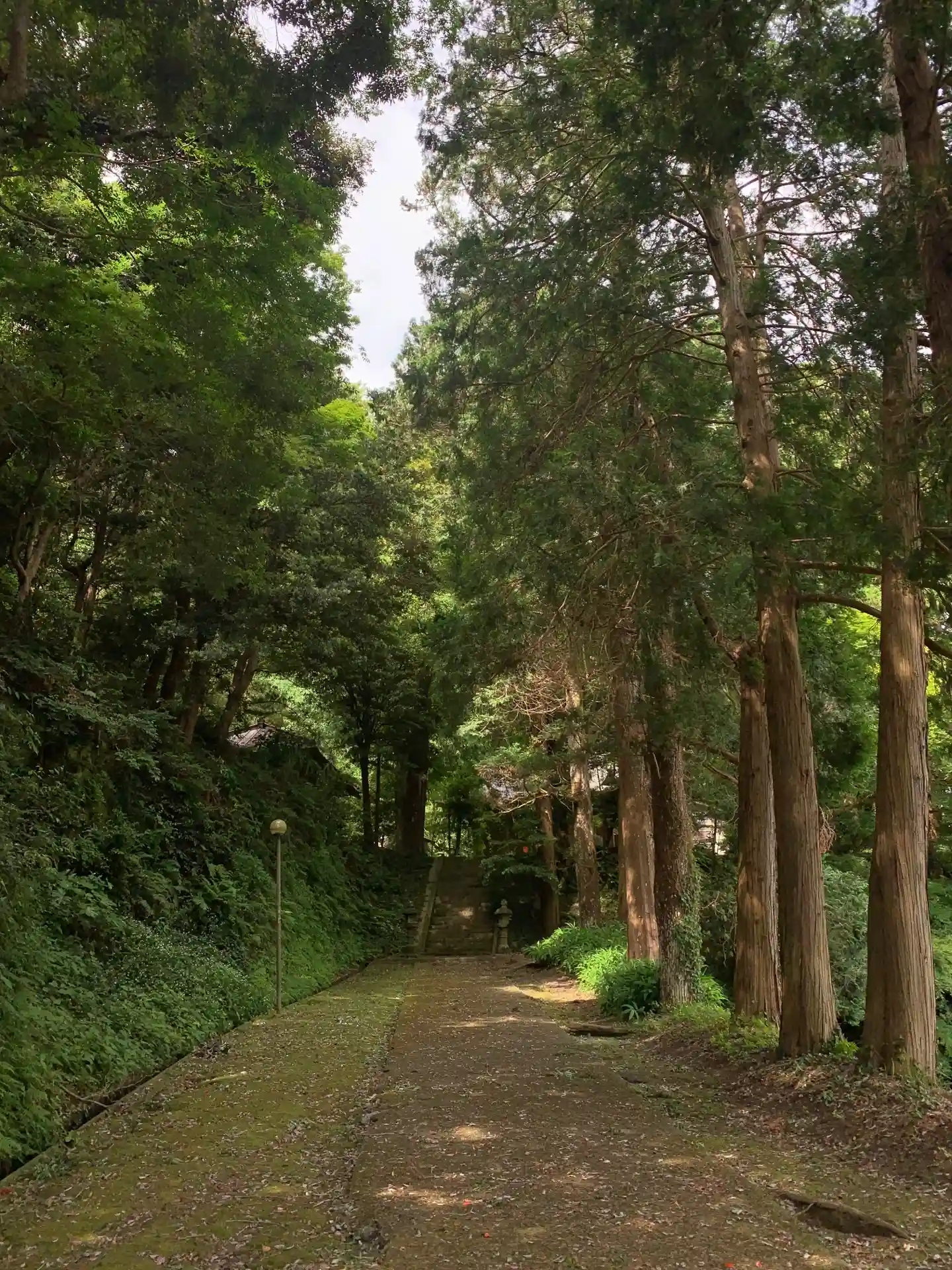 観光客で賑わう日運寺とは対照的に静かな時間が流れています。田んぼの中の一の鳥居、濃い赤の二の鳥居と苔むした杉並木がとても雰囲気いいです。