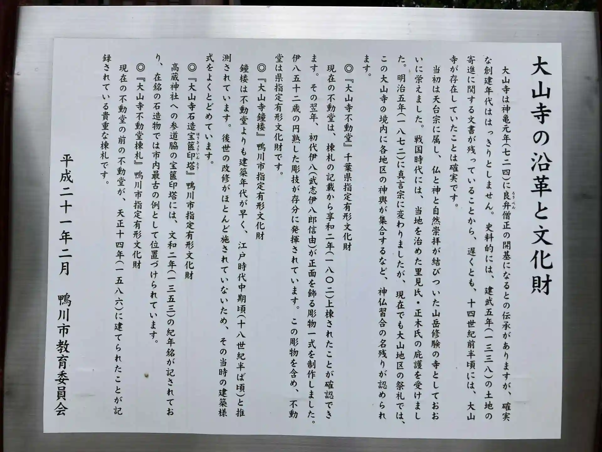 娘の受験の付き添いで鴨川市へ行った時に「波の伊八の彫刻巡り」のため参拝
