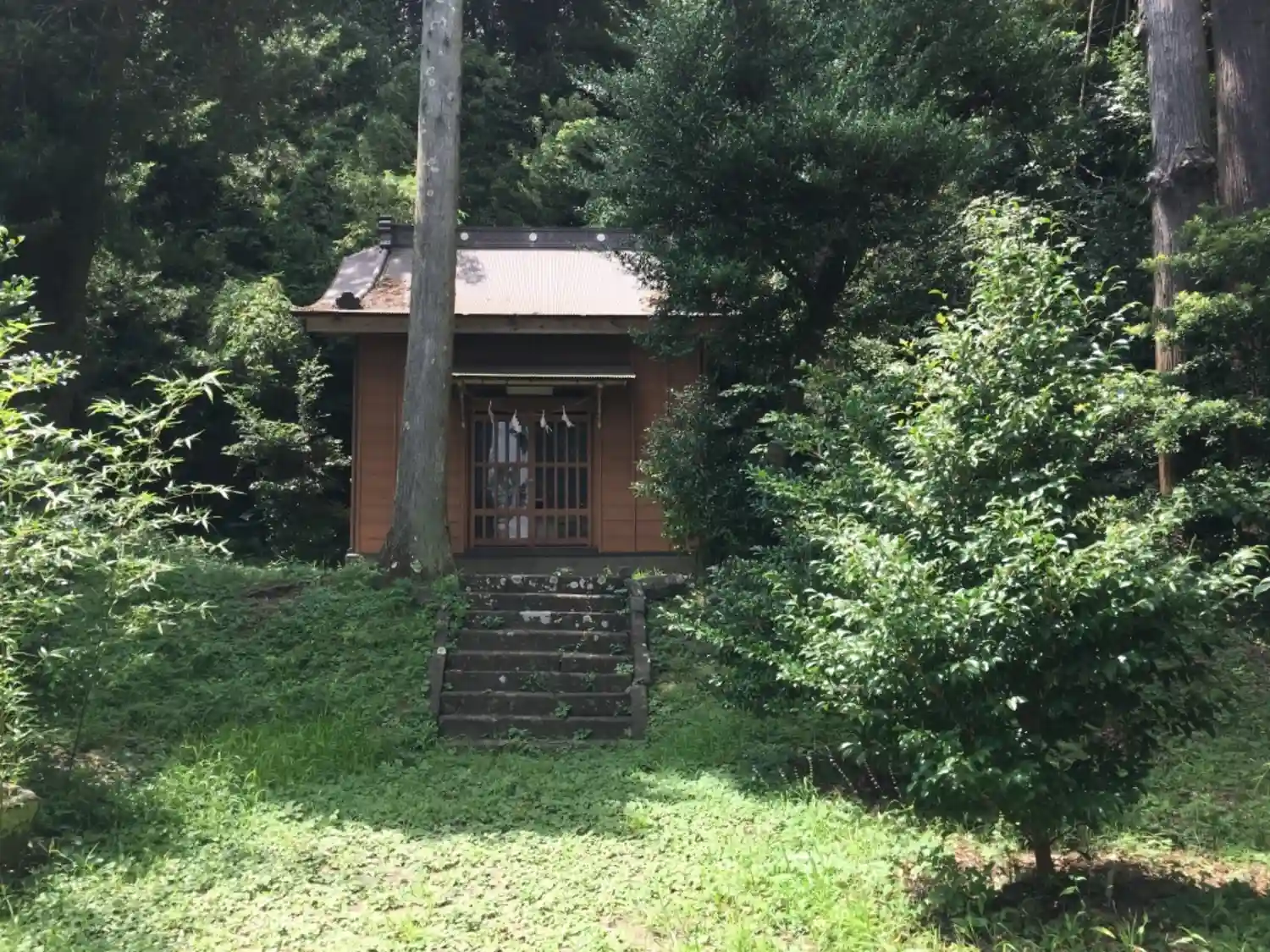 鳥居代わりでしょうか、一対の巨木が印象的。