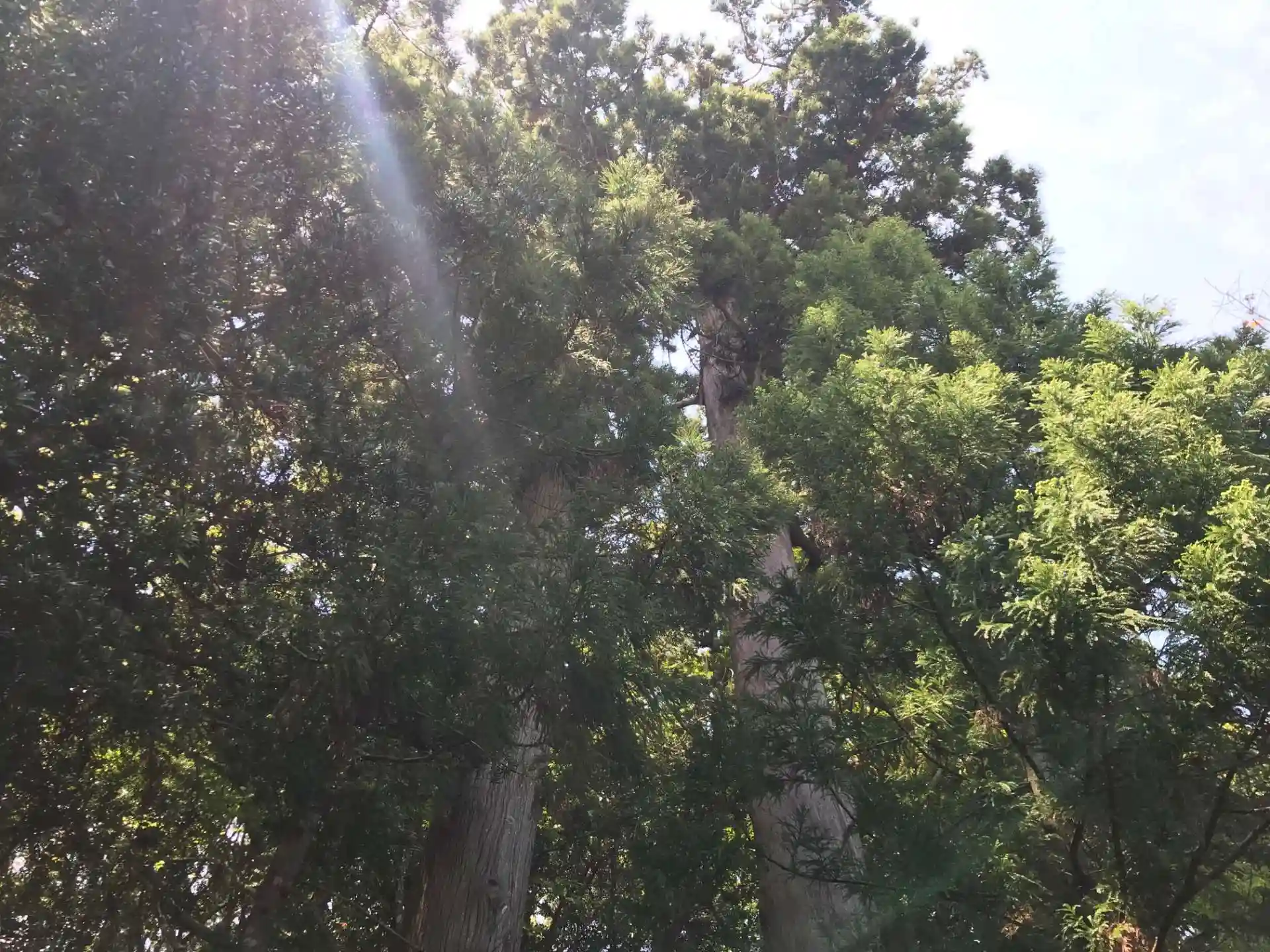 鳥居代わりでしょうか、一対の巨木が印象的。