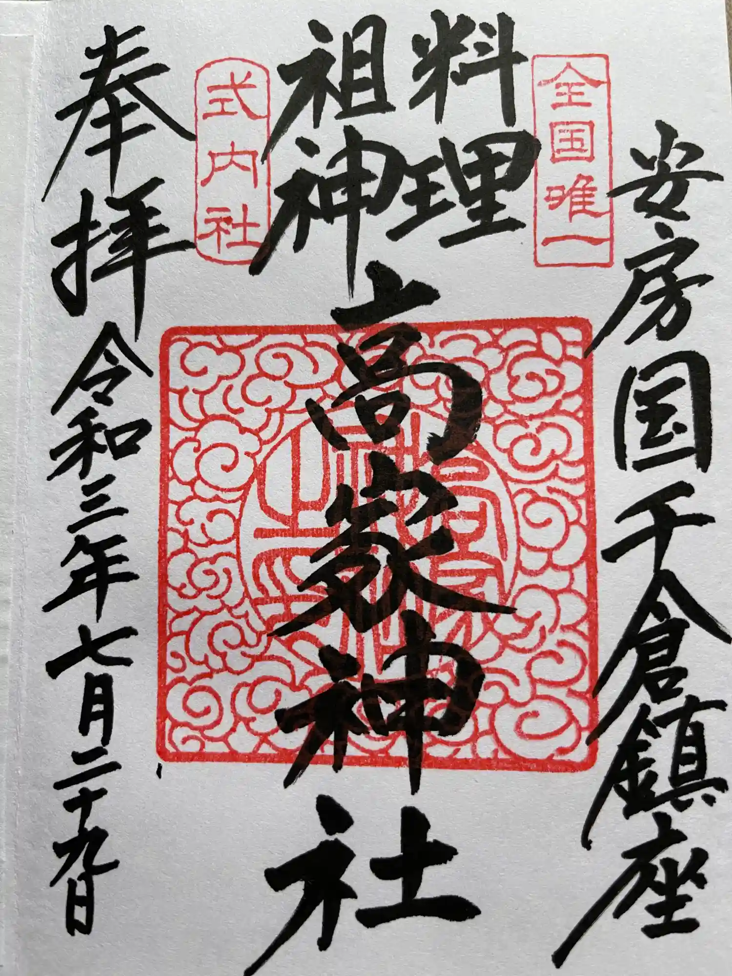 御朱印。社務所は一人で作業していたので、書置きを頂きました。
