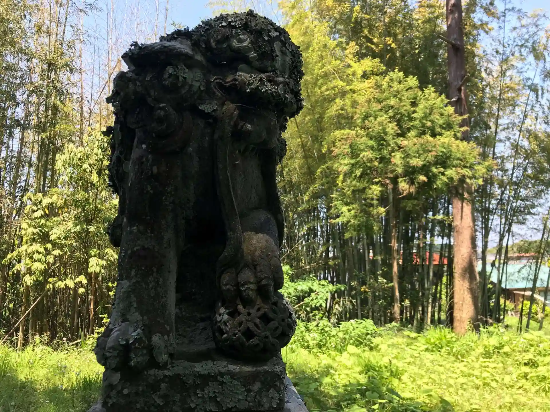 上半分が失われた灯籠。