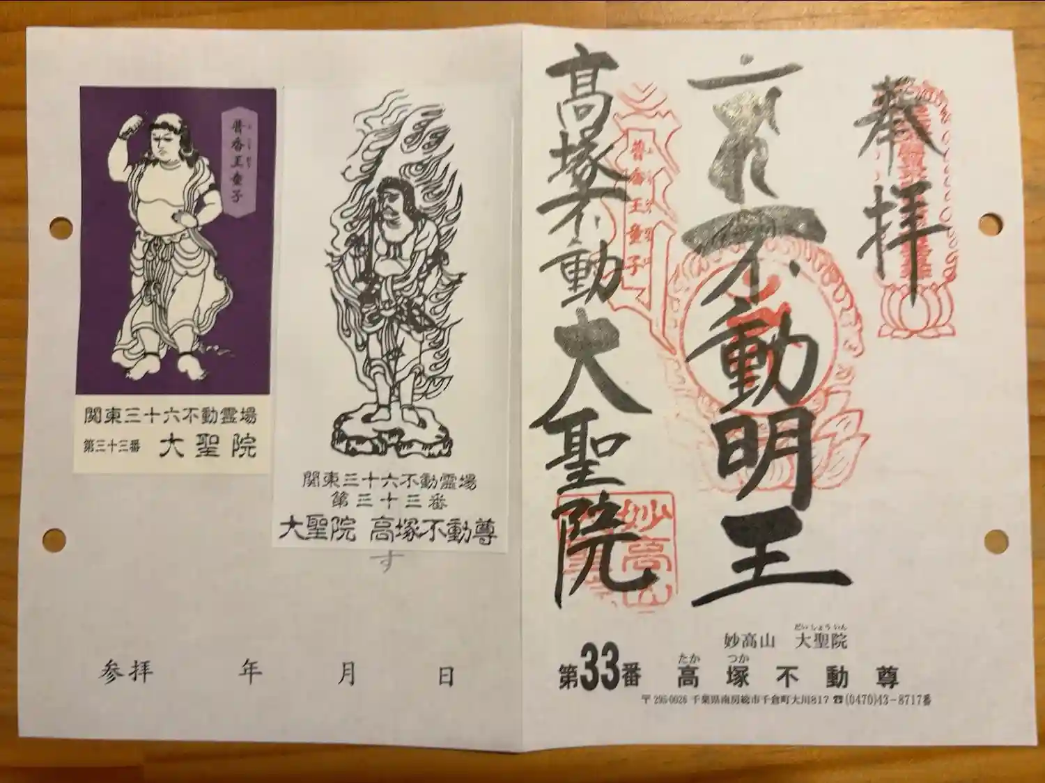 関東三十六不動霊場専用の書置きでいただきました
