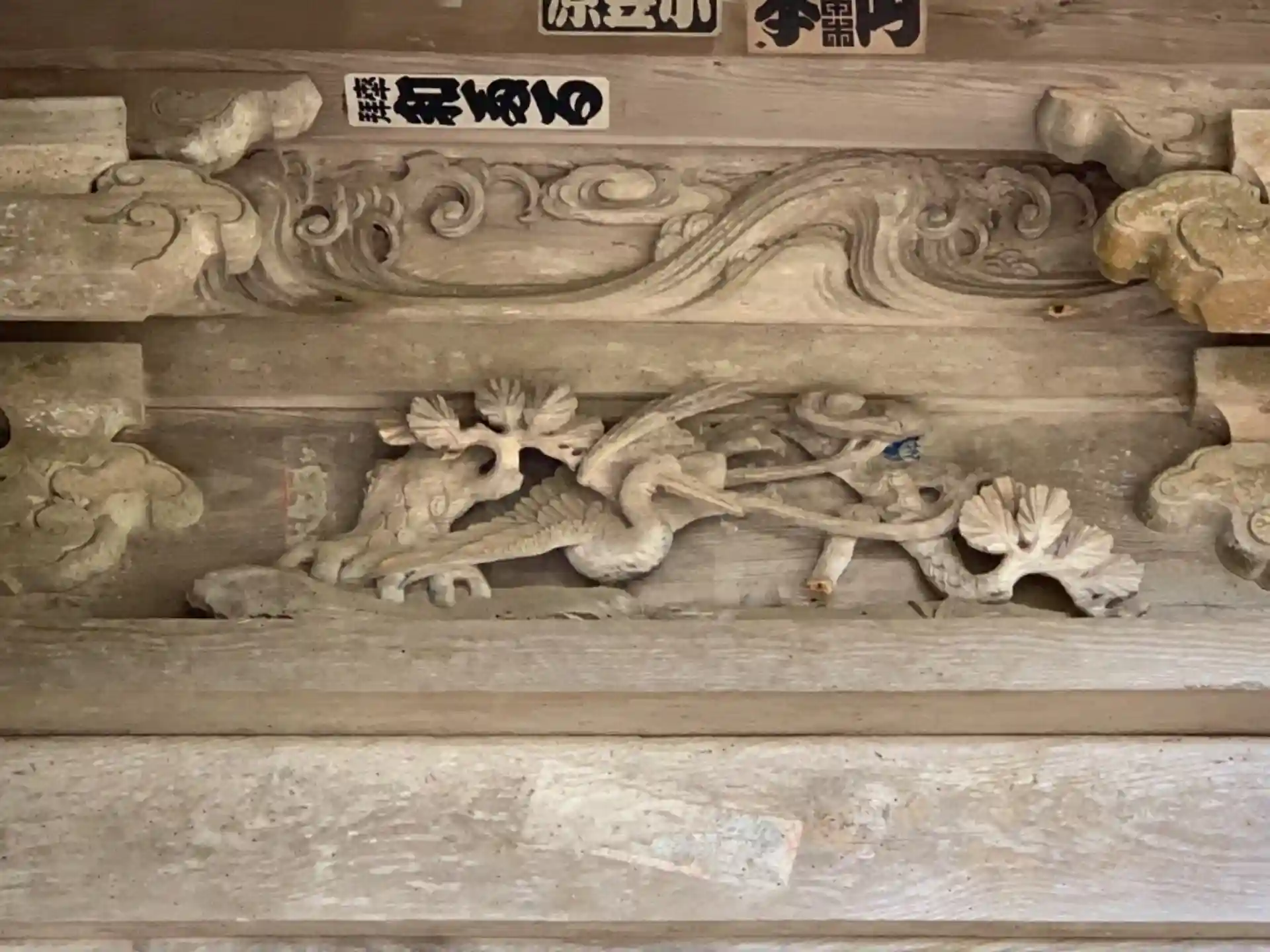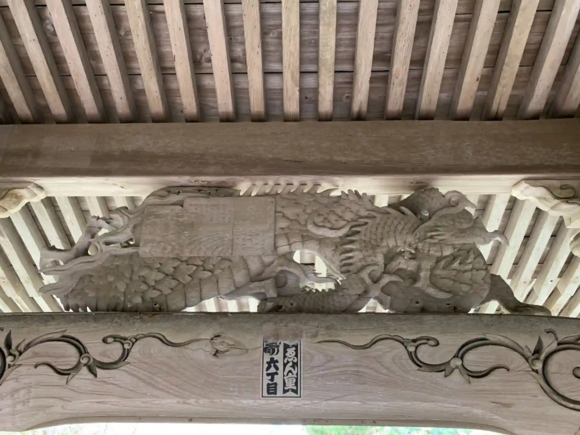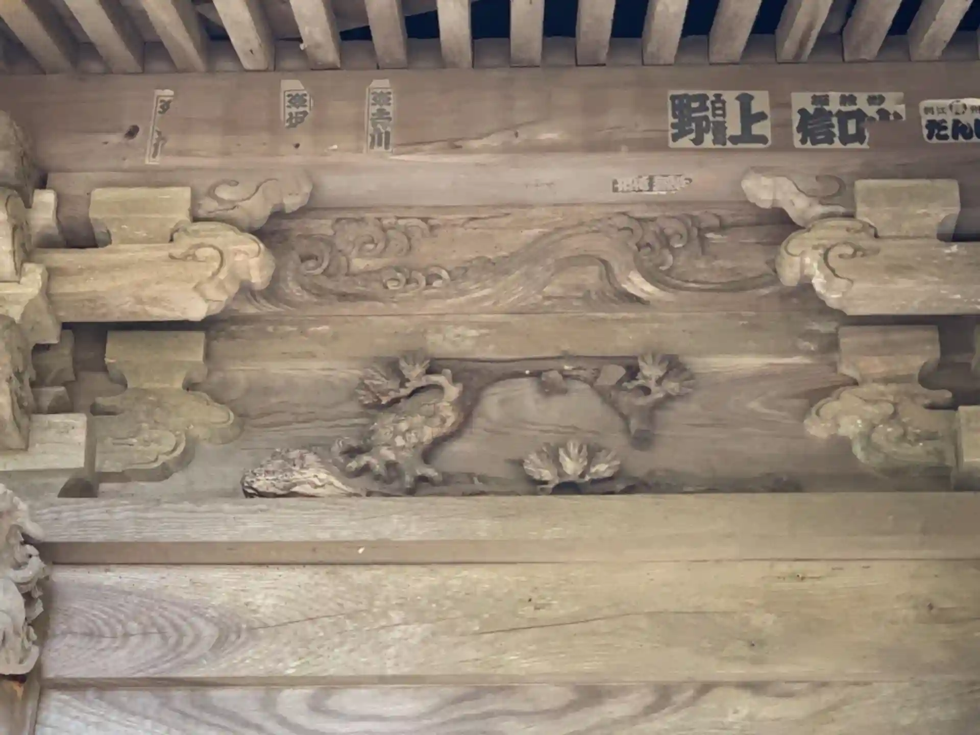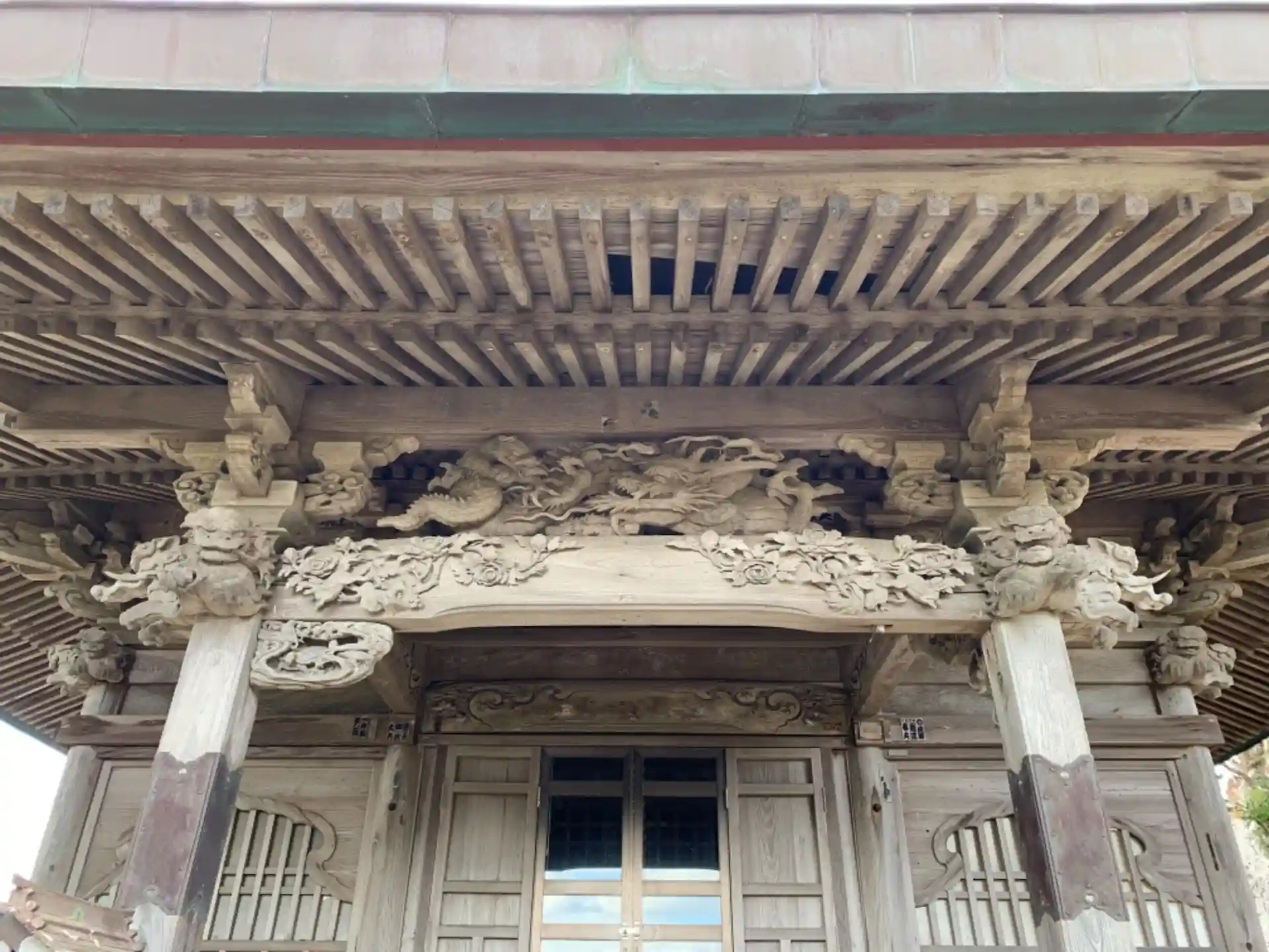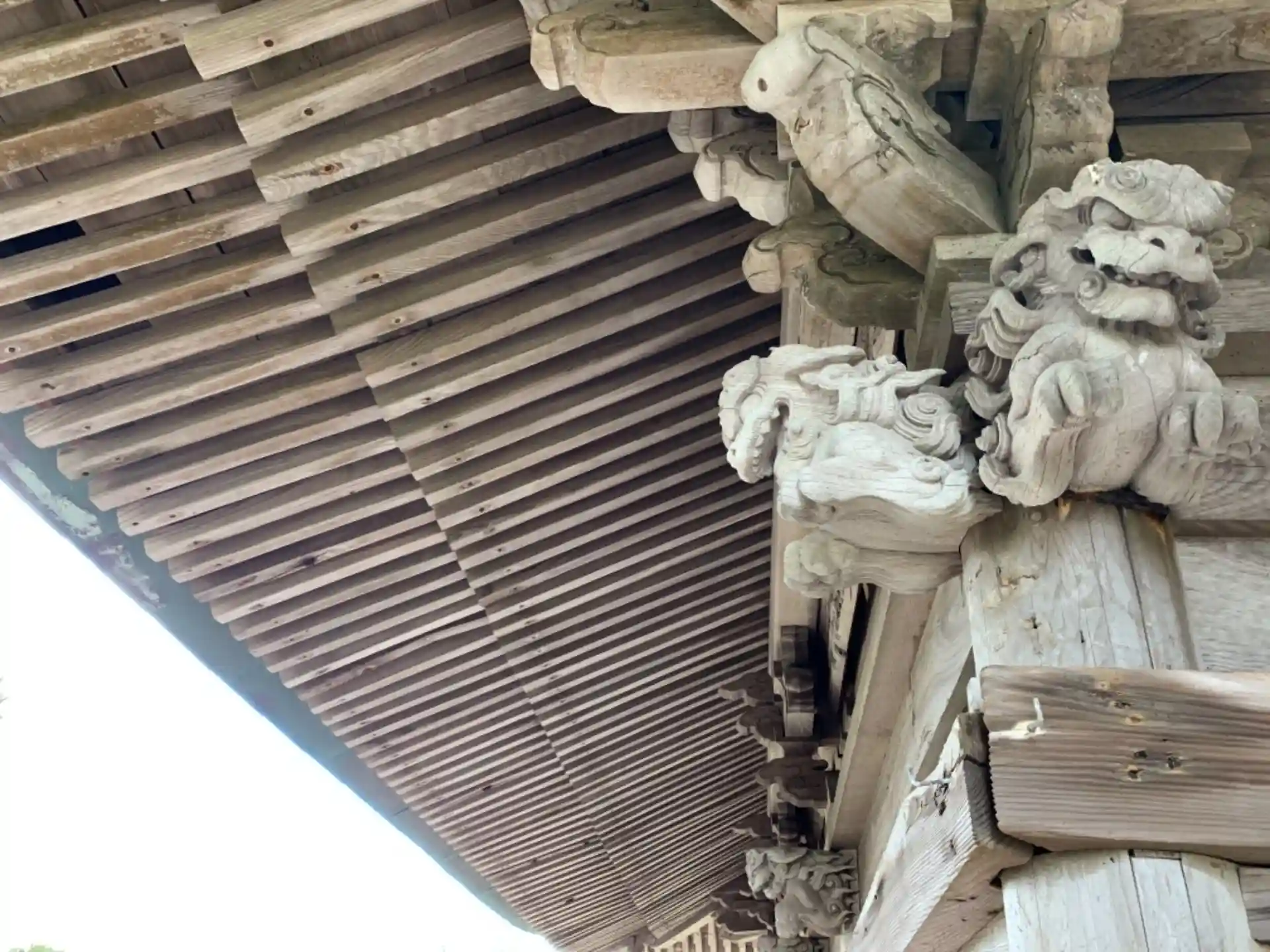 虹梁に浮き彫りされた小さな獅子は木鼻の獅子と親子のように見えます。