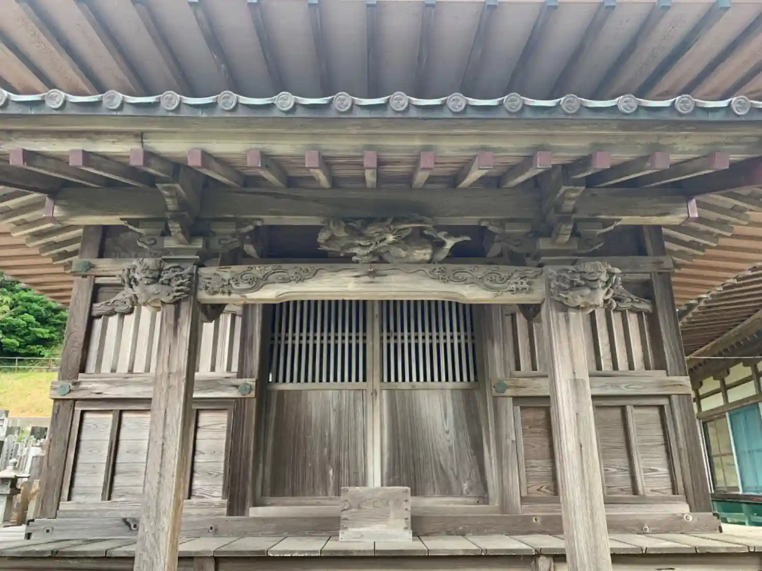 小さなお寺のなんの説明もない向拝彫刻がかなりレベル高いです。