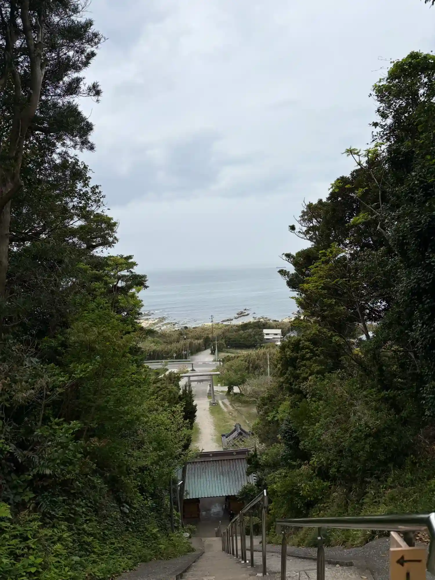 長い石段を登った先にある境内や浜鳥居から見える海空は絶景でした✨
