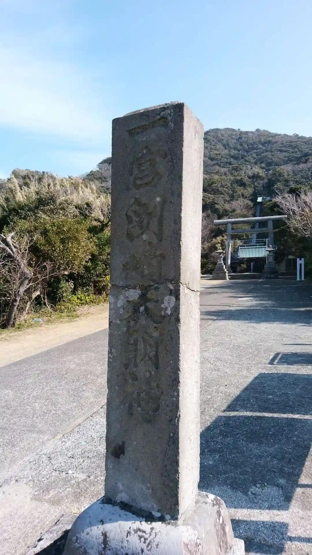 安房国一宮 東京湾を一望できる高台に境内があります。視界があれば、高台の鳥居の下に富士山が見えるはずでしたが、この日は残念。ご朱印の字体がかっこいい。