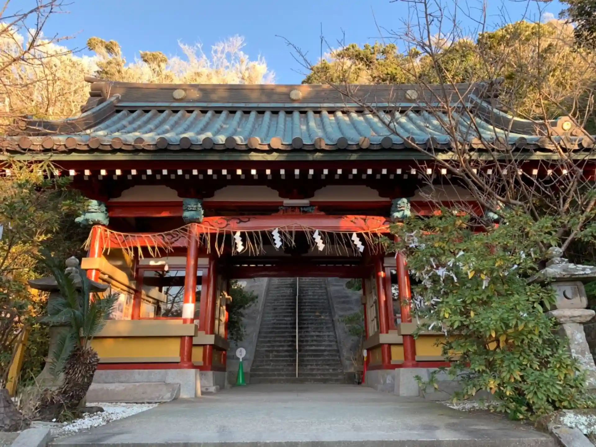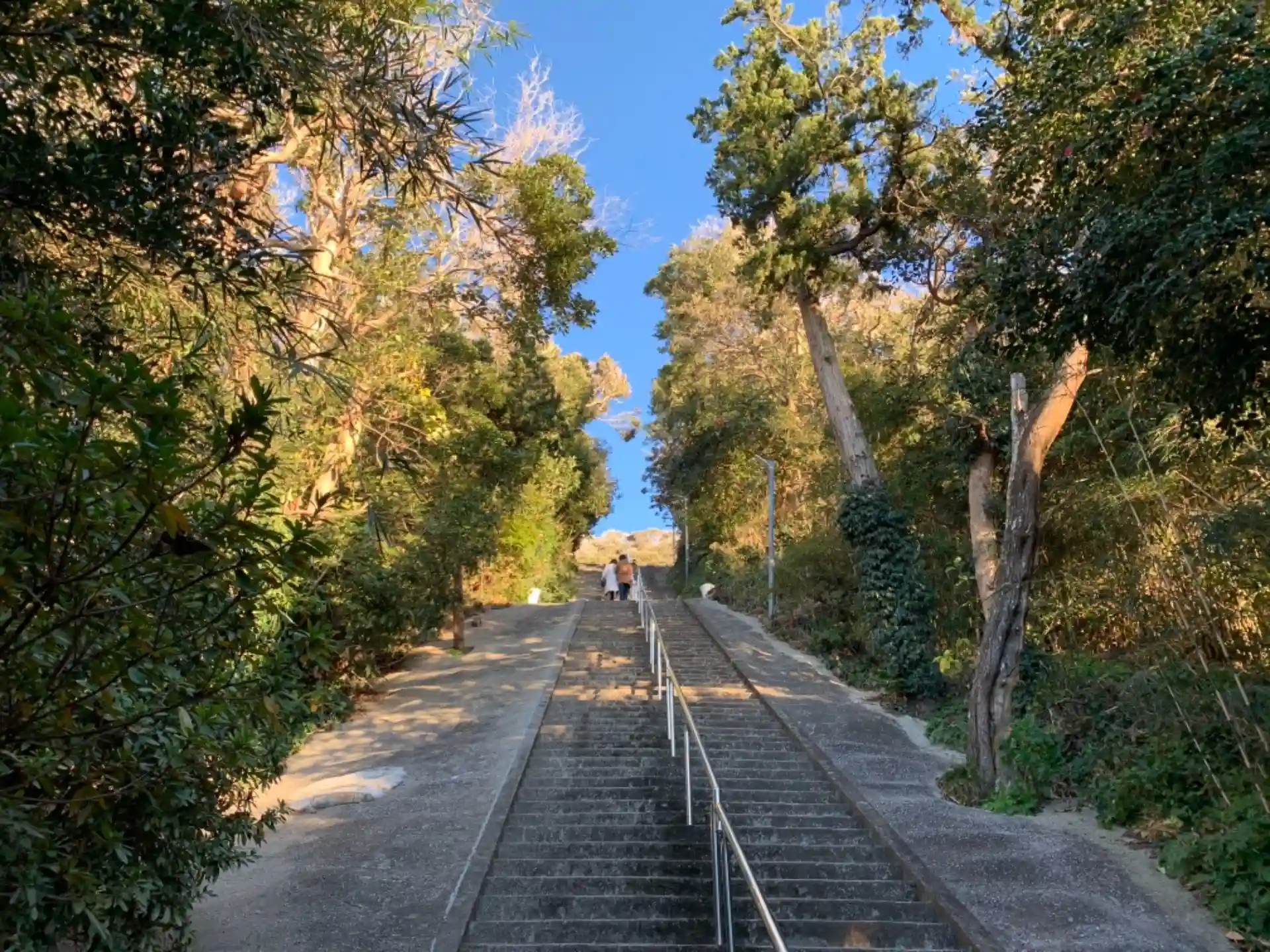長い石段の中程で富士山が見えますが、富士山を見るなら海の方に出た方がよさげです。