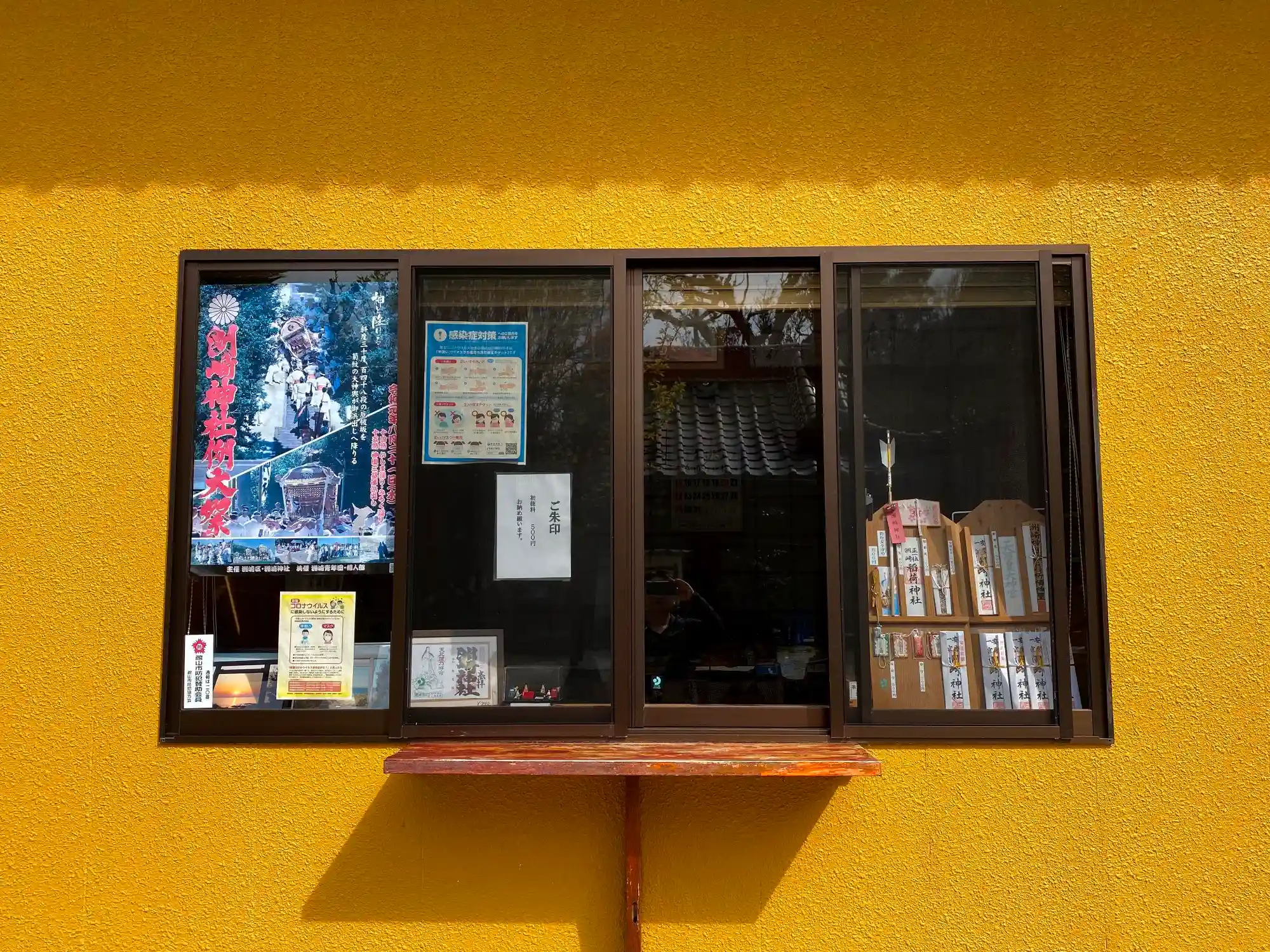 境内入口まで戻って、目立つビビッドな<社務所>。御朱印はこちら。