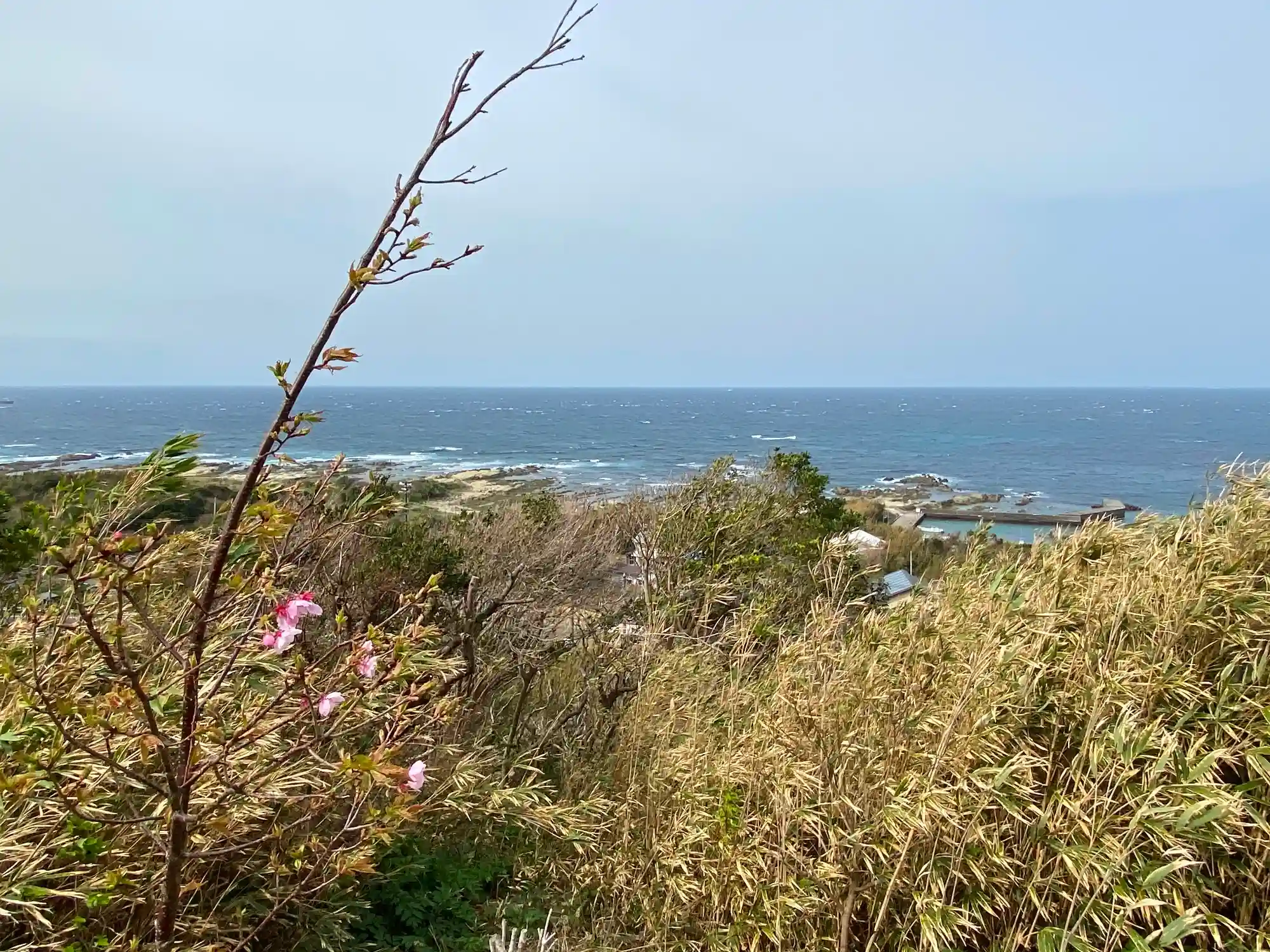 稲荷神社の脇道を進むと、、、(海風で植物が全て左上方向に伸びている。笑)