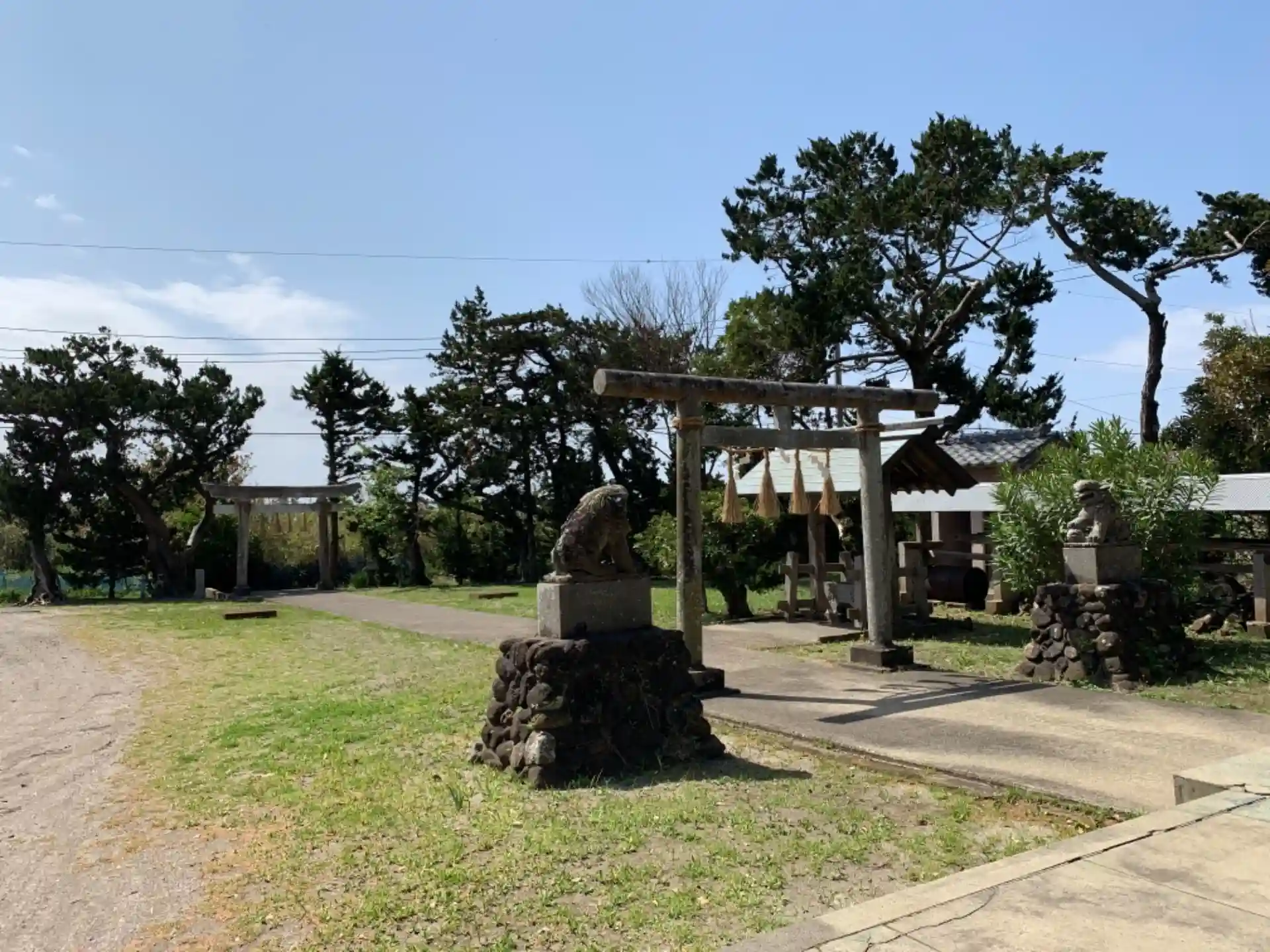 広々とした境内に立派な屋根の神社。